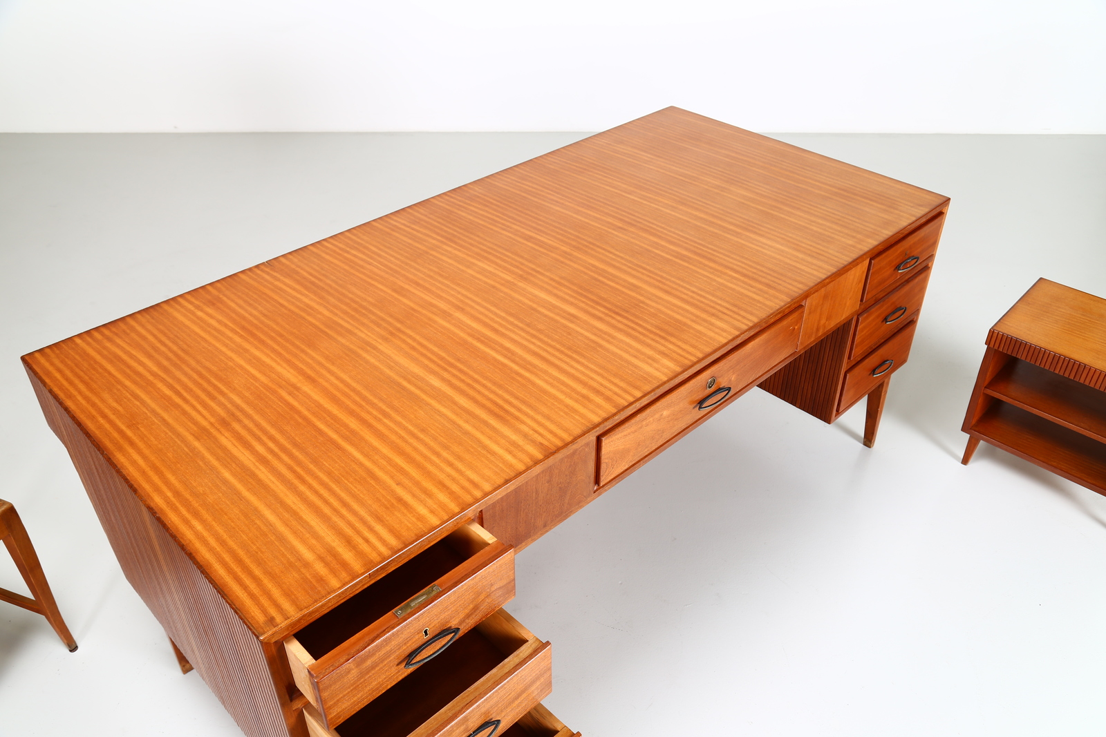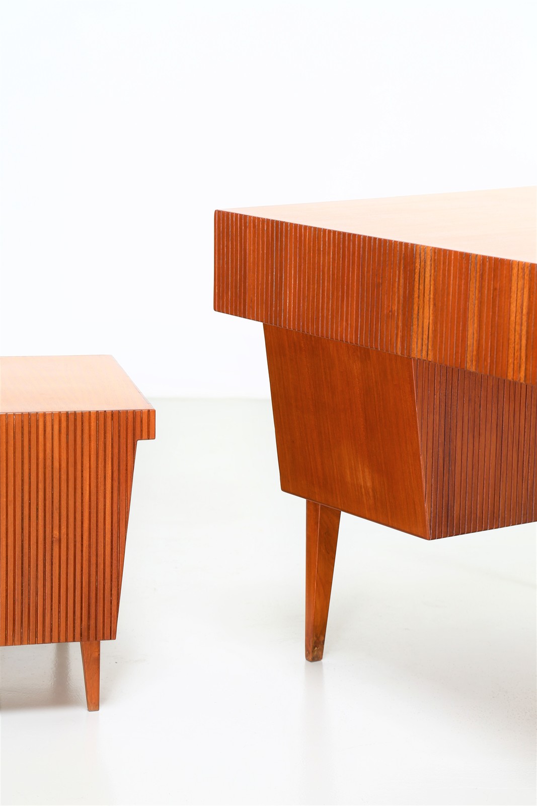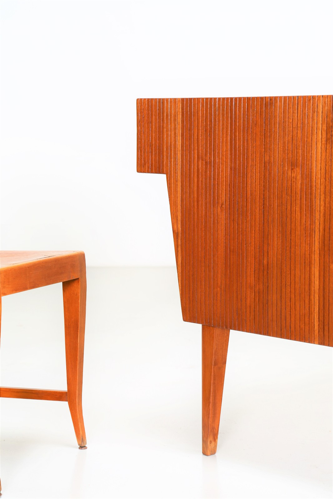 PONTI GIO' (1891 - 1979) "Grissinato" wood typing desk and chair, for Banca Nazionale del Lavoro offices, 1950s. Expertise curated by Salvatore Licitra Archives Gio Ponti Milan. . Cm 190,00 x 80,00 x 90,00. Typing desk size: H 50 L 50 D 35