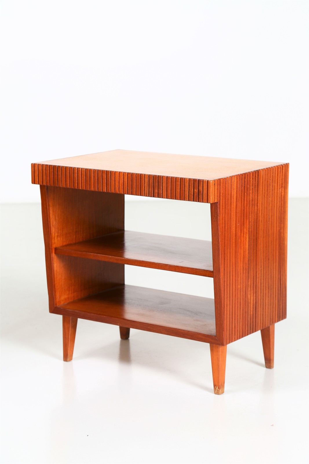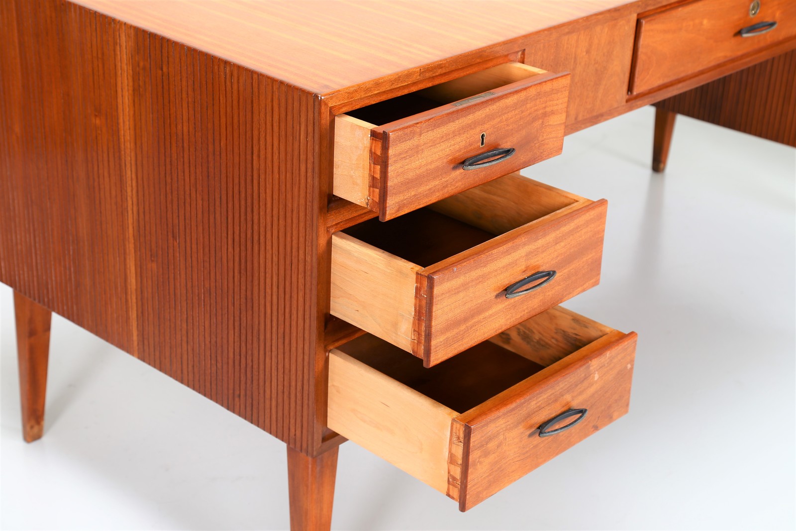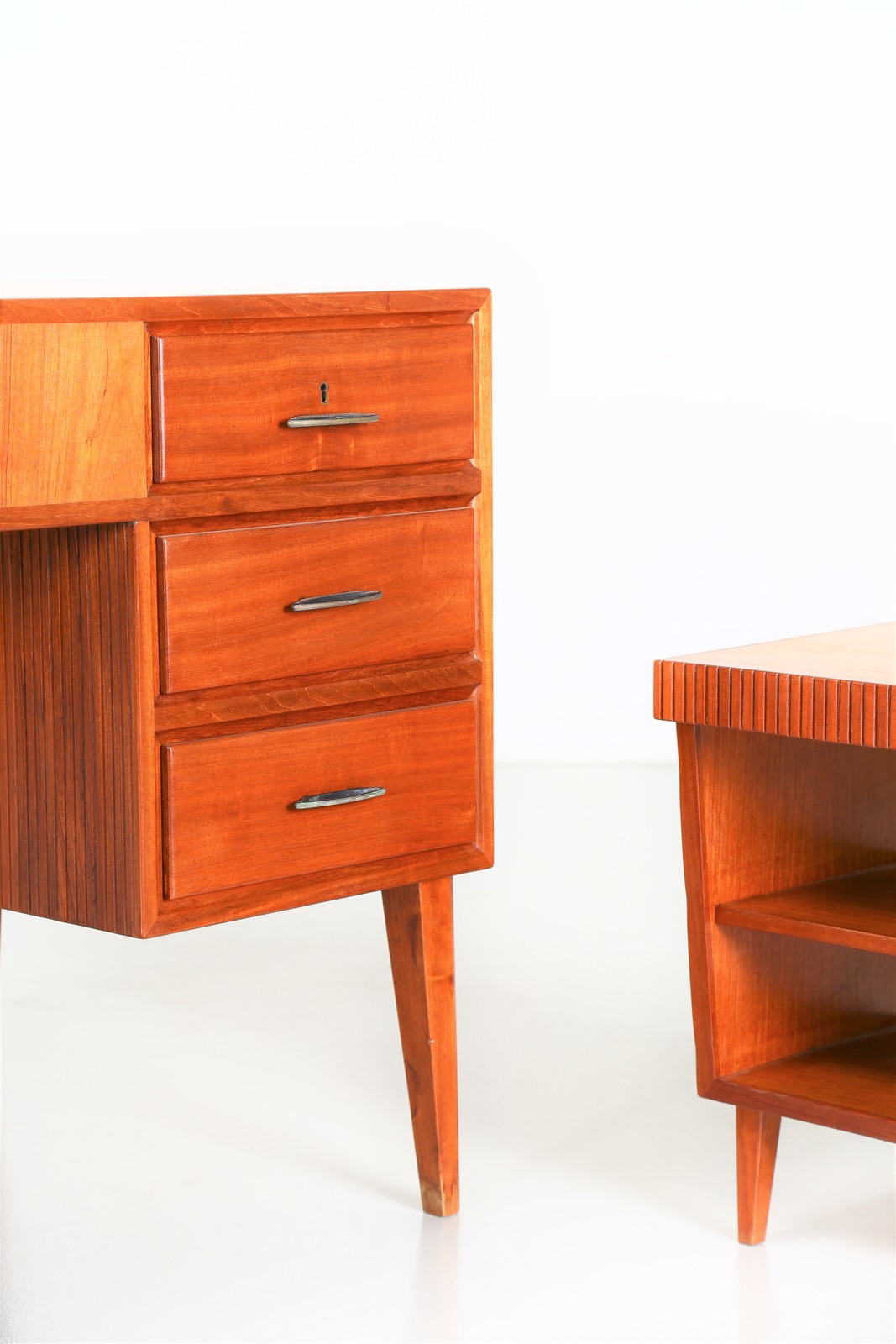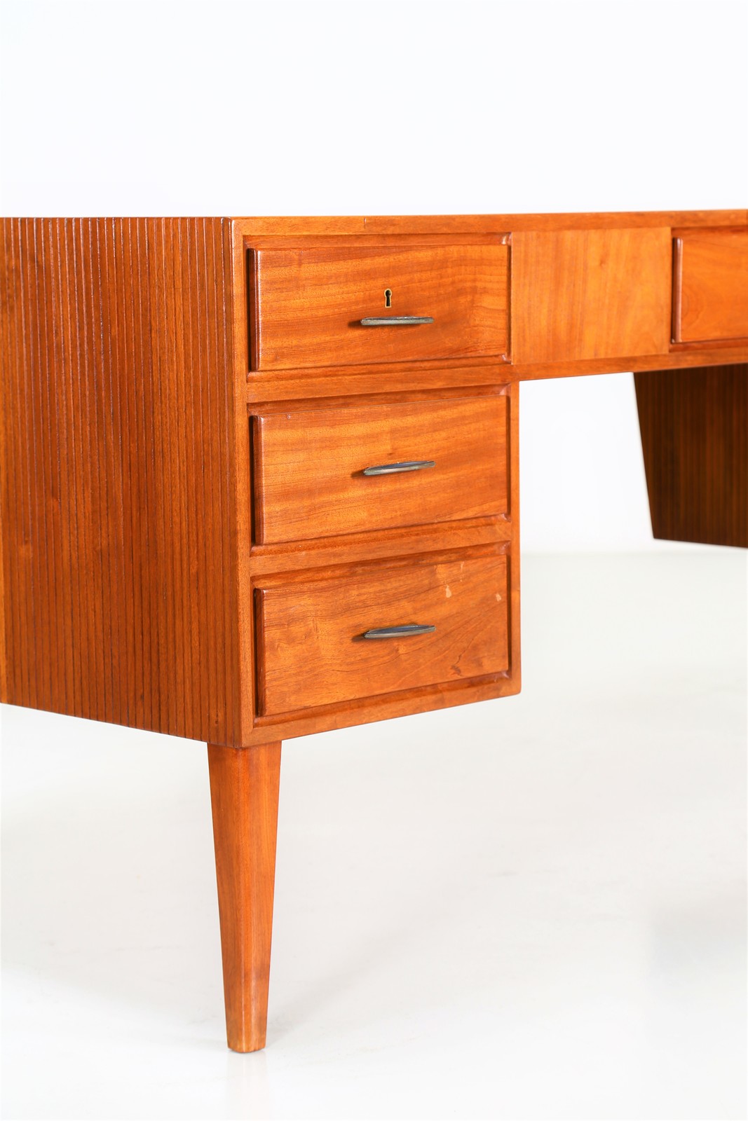 PONTI GIO' (1891 - 1979) "Grissinato" wood typing desk and chair, for Banca Nazionale del Lavoro offices, 1950s. Expertise curated by Salvatore Licitra Archives Gio Ponti Milan. . Cm 190,00 x 80,00 x 90,00. Typing desk size: H 50 L 50 D 35