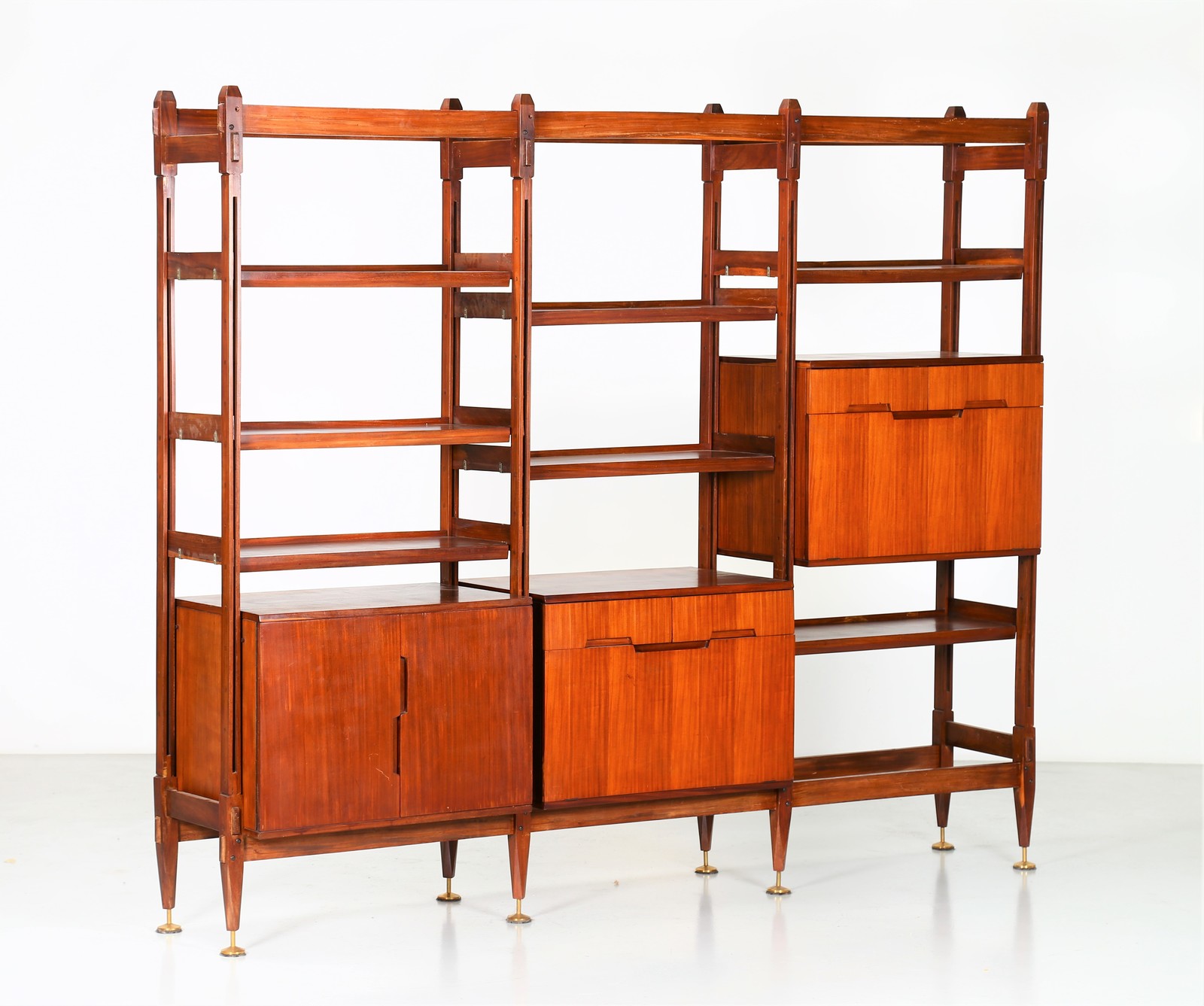 Lot 386 | MANIFATTURA ITALIANA Libreria in teak con dettagli in ottone, anni 50. -. ....
