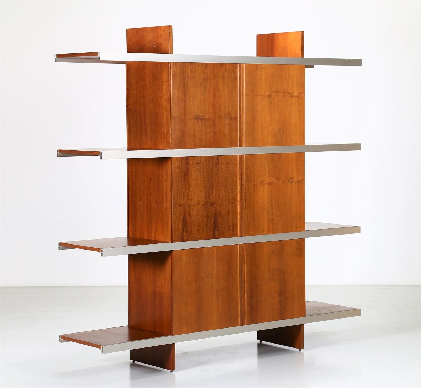MANGIAROTTI ANGELO (n. 1921) Libreria in noce e alluminio, mod Multiuso per...