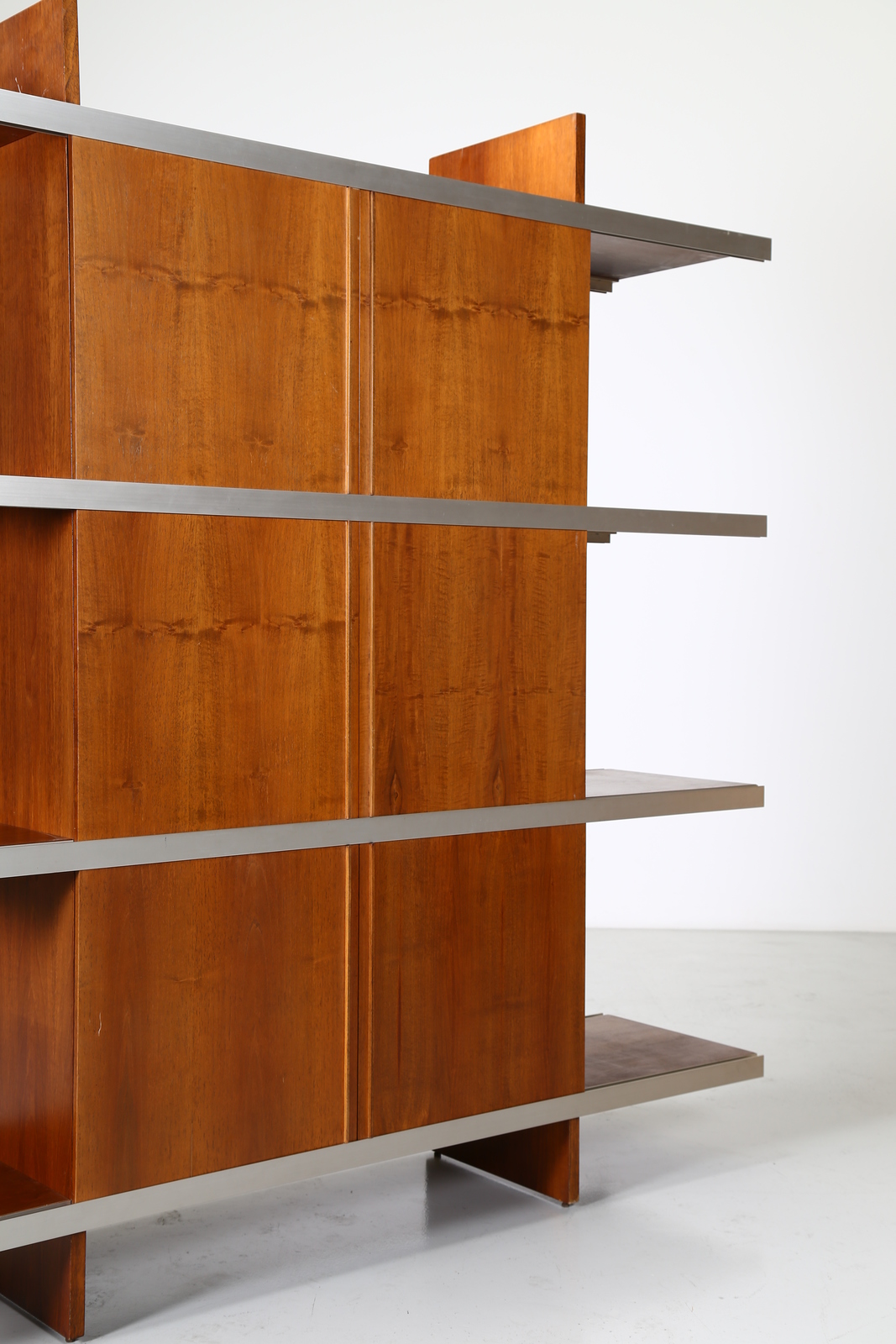 MANGIAROTTI ANGELO (n. 1921) Libreria in noce e alluminio, mod Multiuso per Poltronova 1965