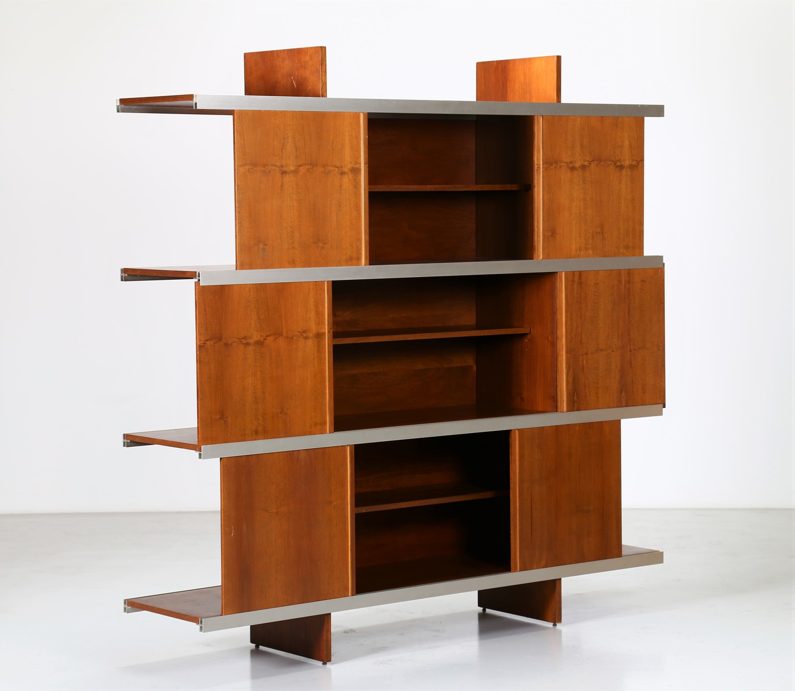 MANGIAROTTI ANGELO (n. 1921) Walnut and aluminium bookcase, mod. Multiuso for Poltronova, 1965