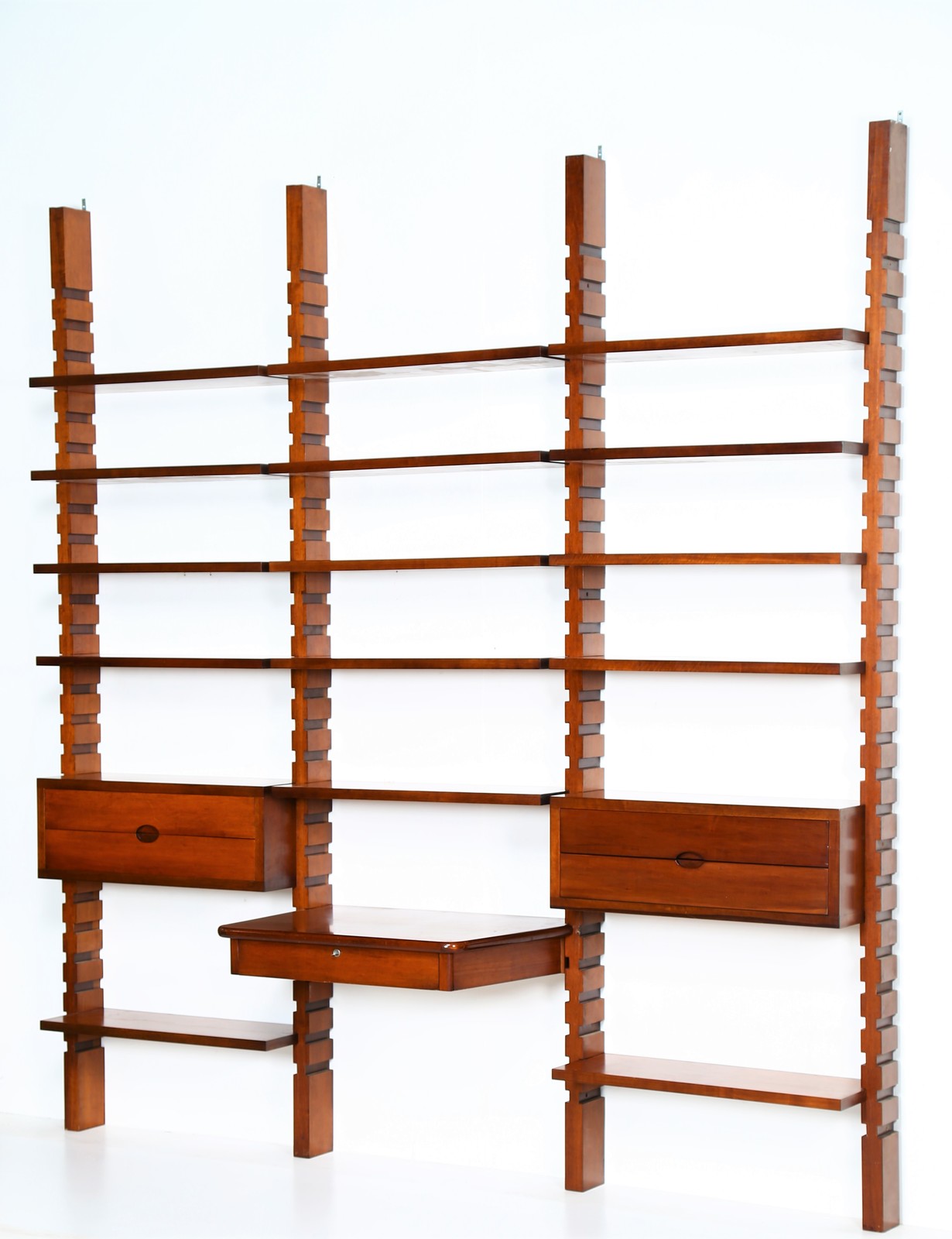FRATTINI GIANFRANCO (1926 - 2004) Modular bookcase, for Bernini, 1960s. . Cm 280,00 x 293,00 x 61,00. Walnut