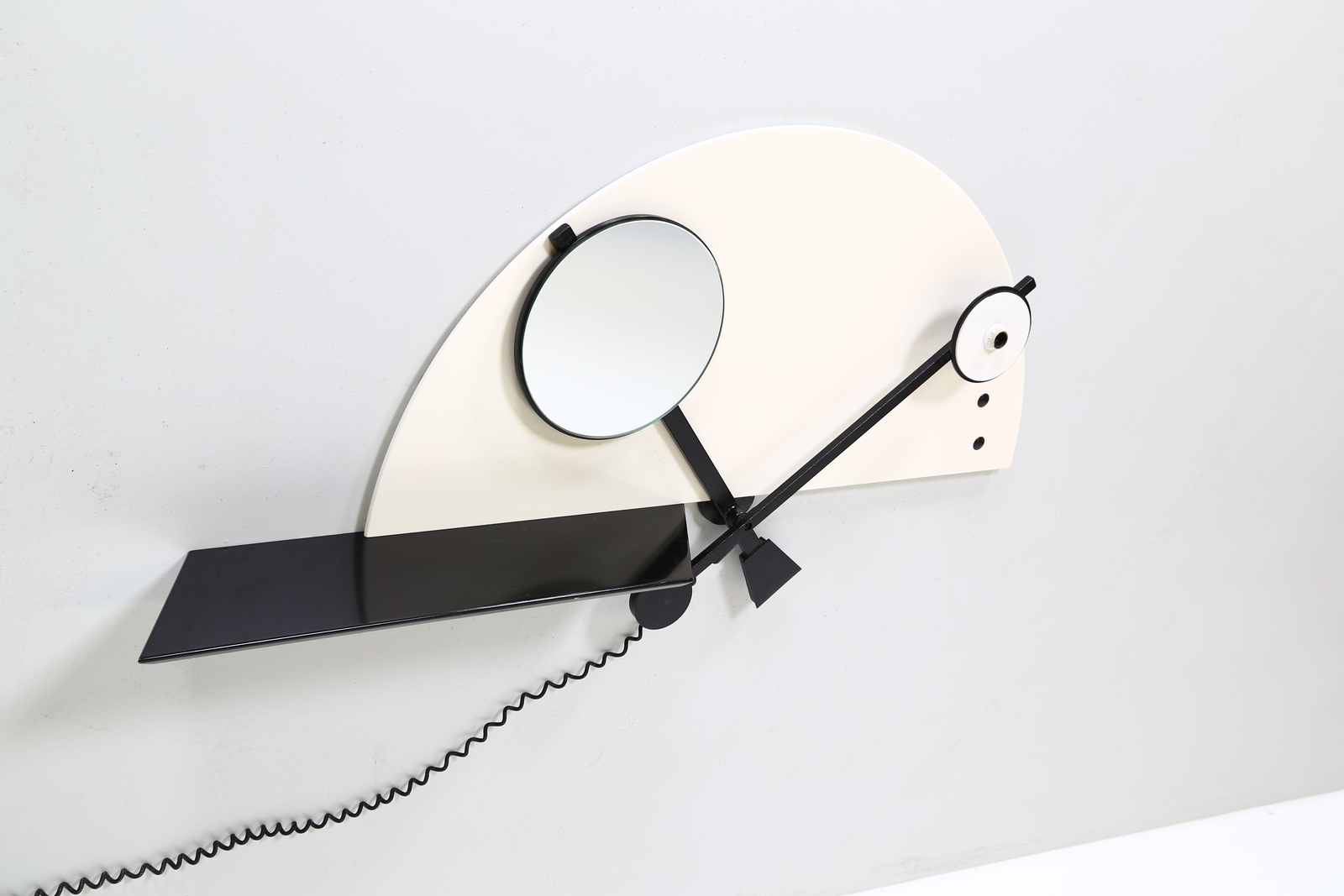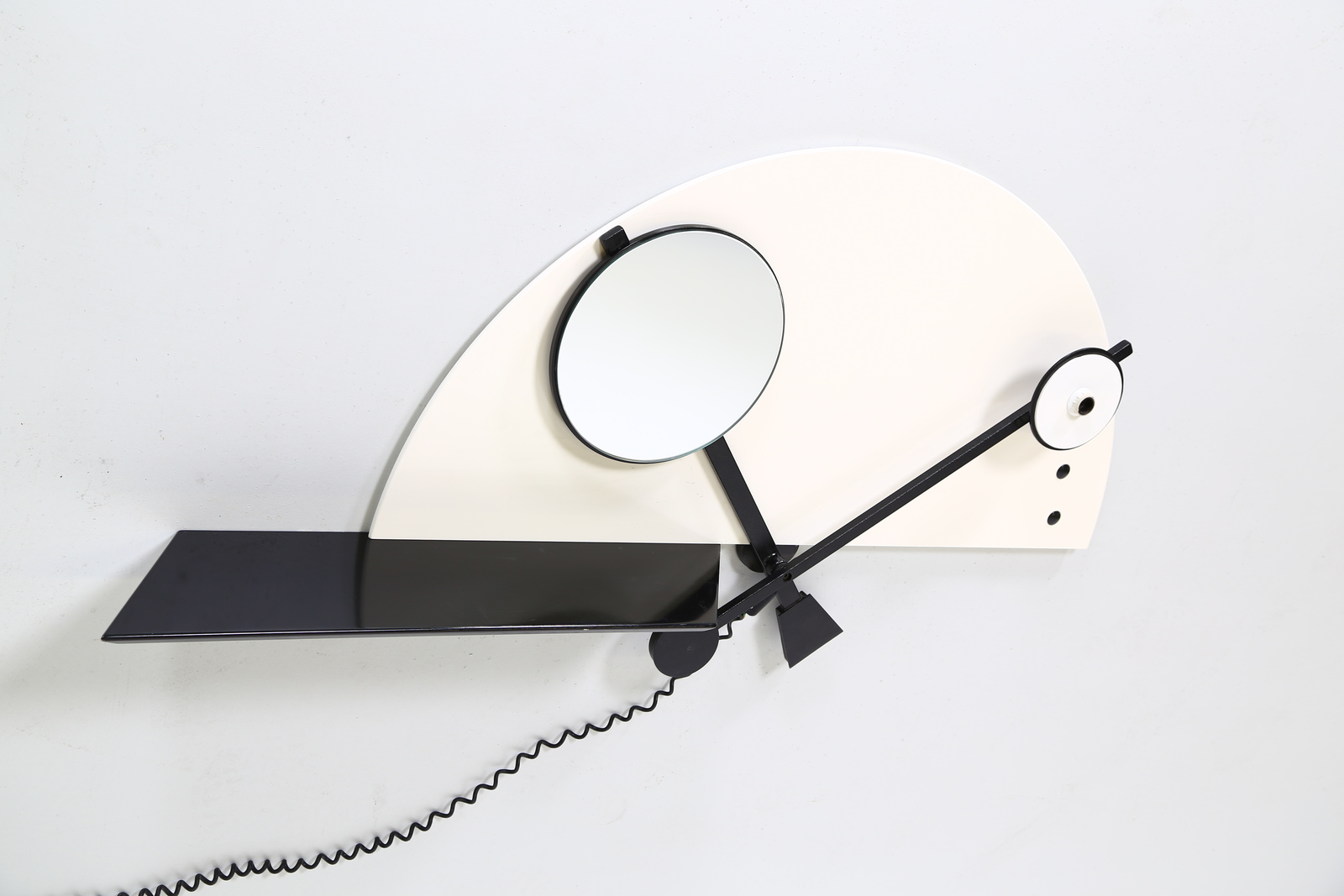 MANIFATTURA ITALIANA Console con specchio, metallo e legno laccato, anni 60 ....