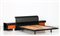 CARDIN PIERRE (n. 1922) Bed with wood, briarwood and leather bedside tables, and brass details . . .