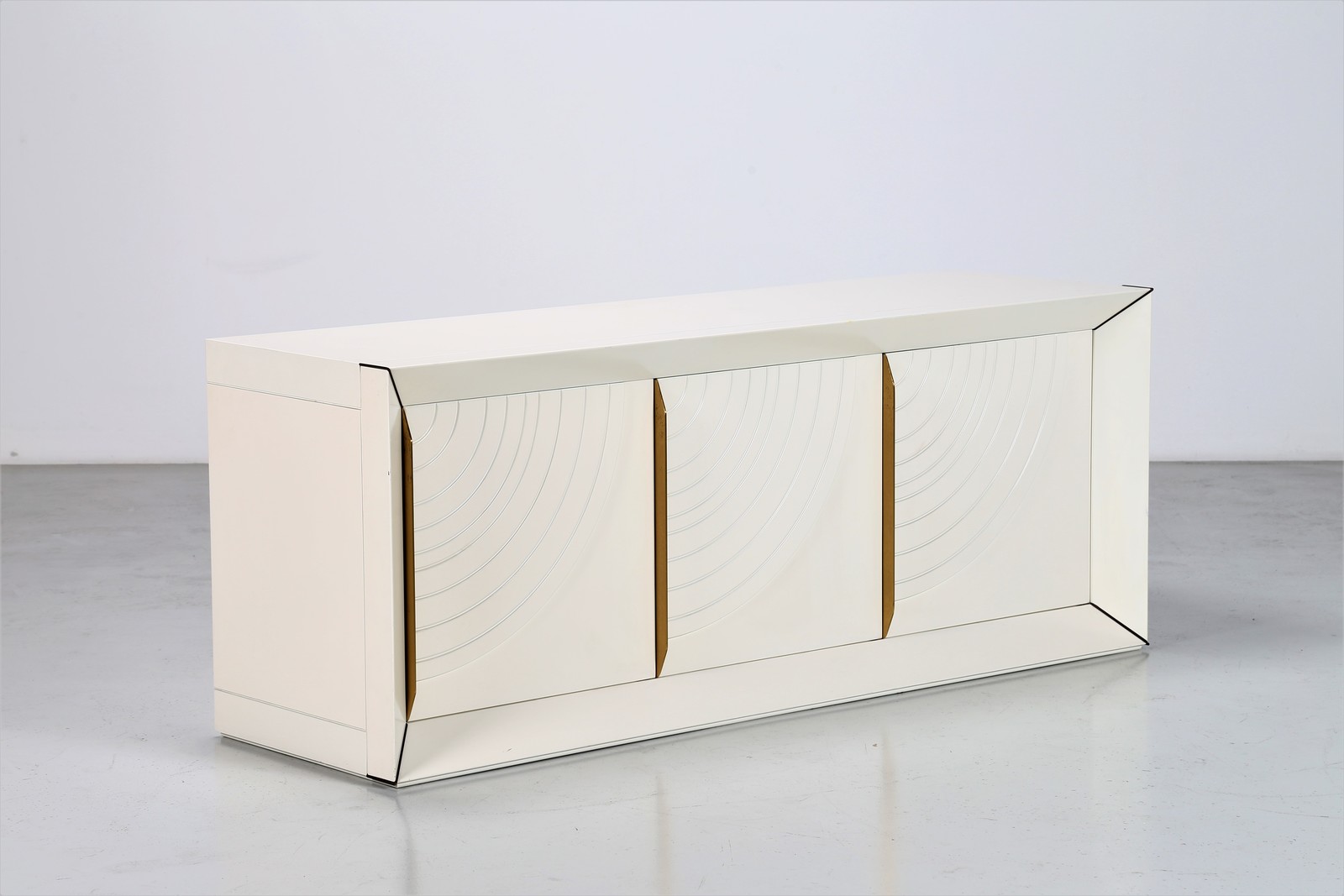 FRIGERIO DI DESIO Lacquered wood and brass sideboard, 1960s. . Cm 183,00 x 72,50 x 56,00.