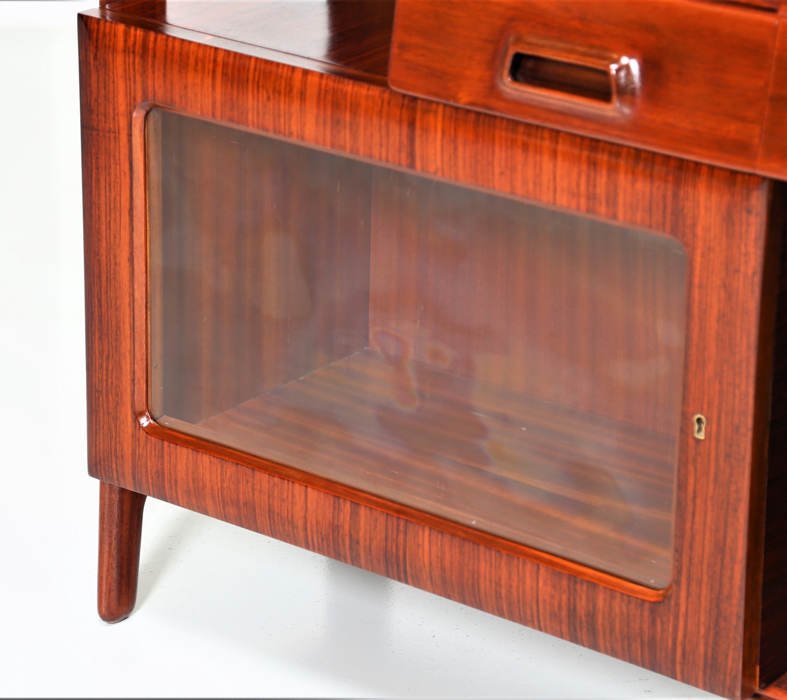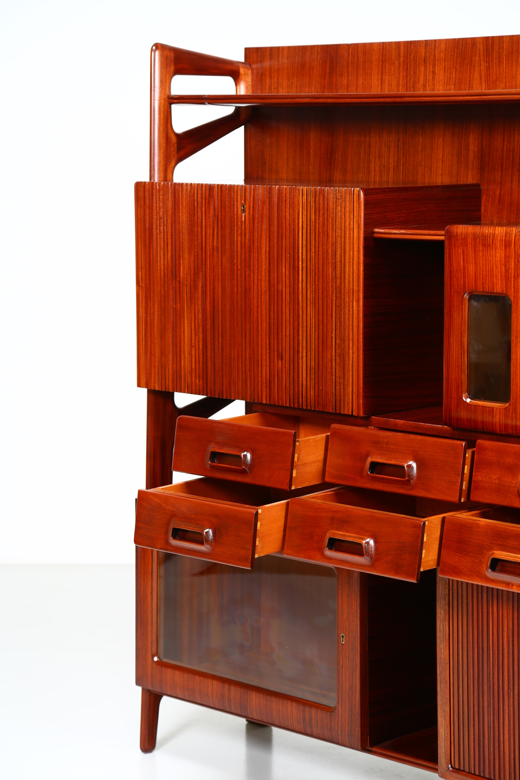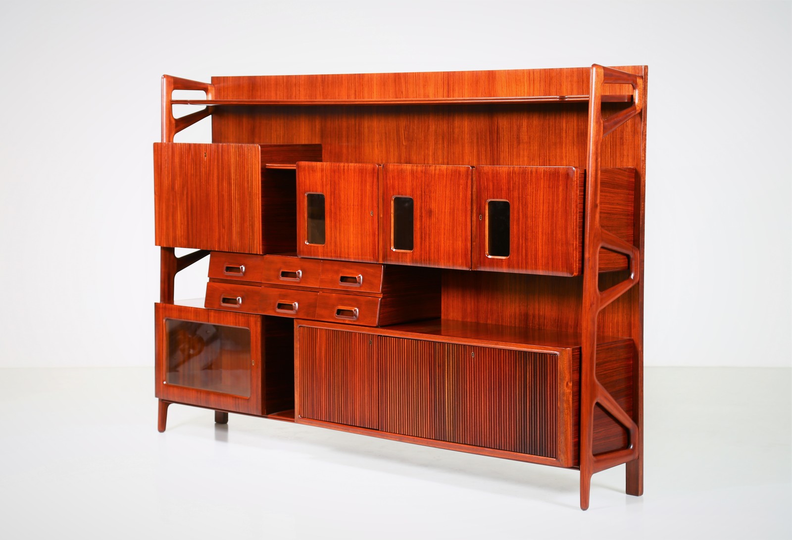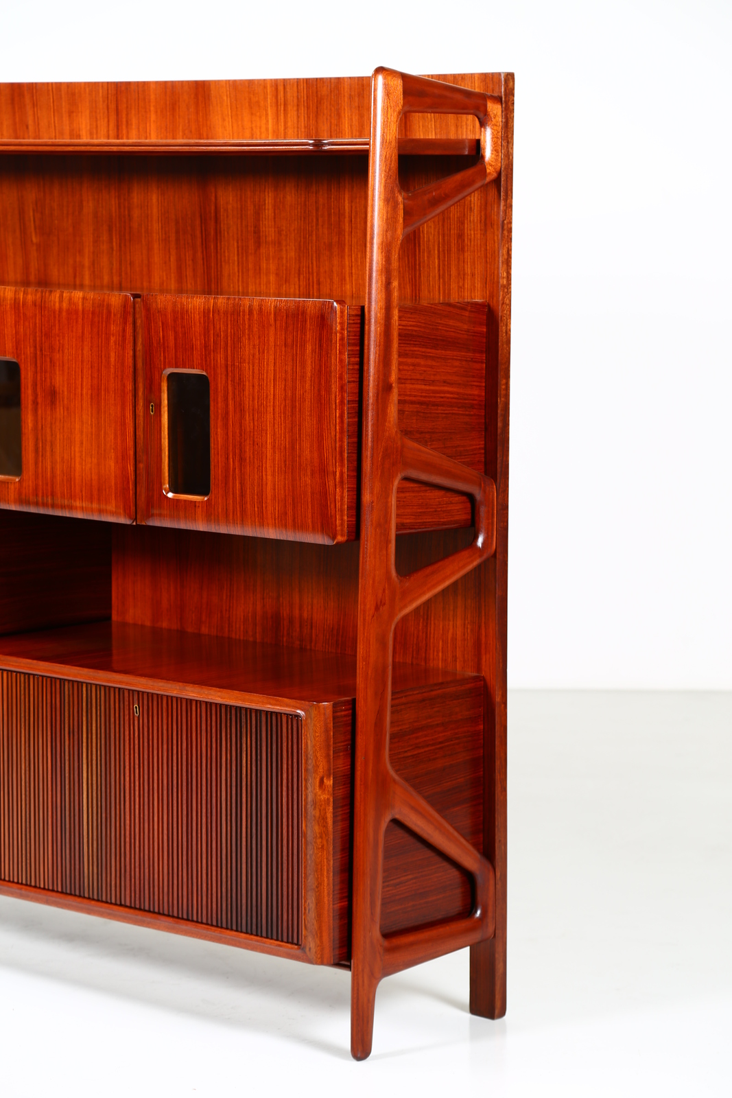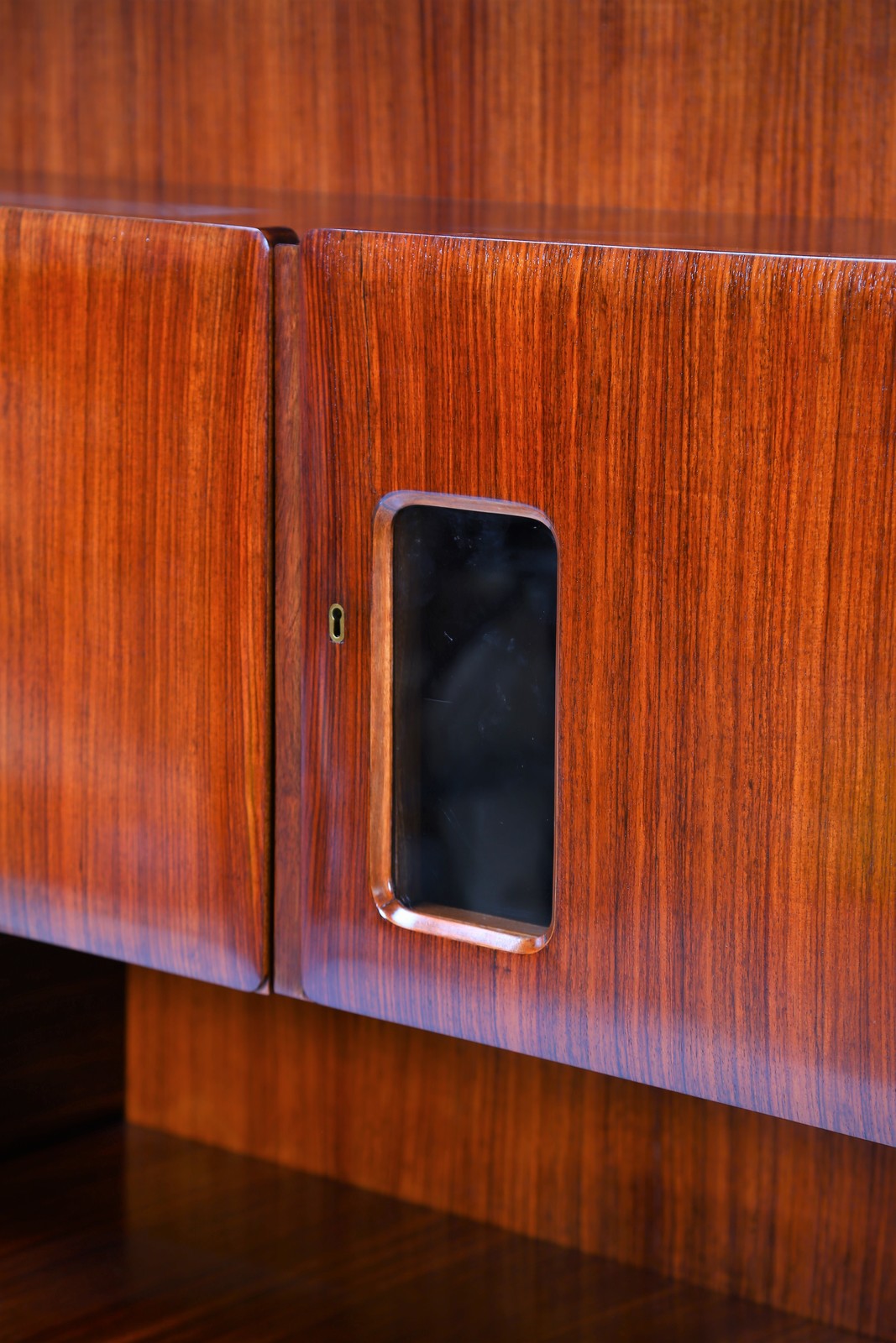 CAVATORTA SILVIO Mobile credenza in palissandro, mogano e piani in vetro, anni 50. -. Cm 230,00 x 167,00 x 62,00.