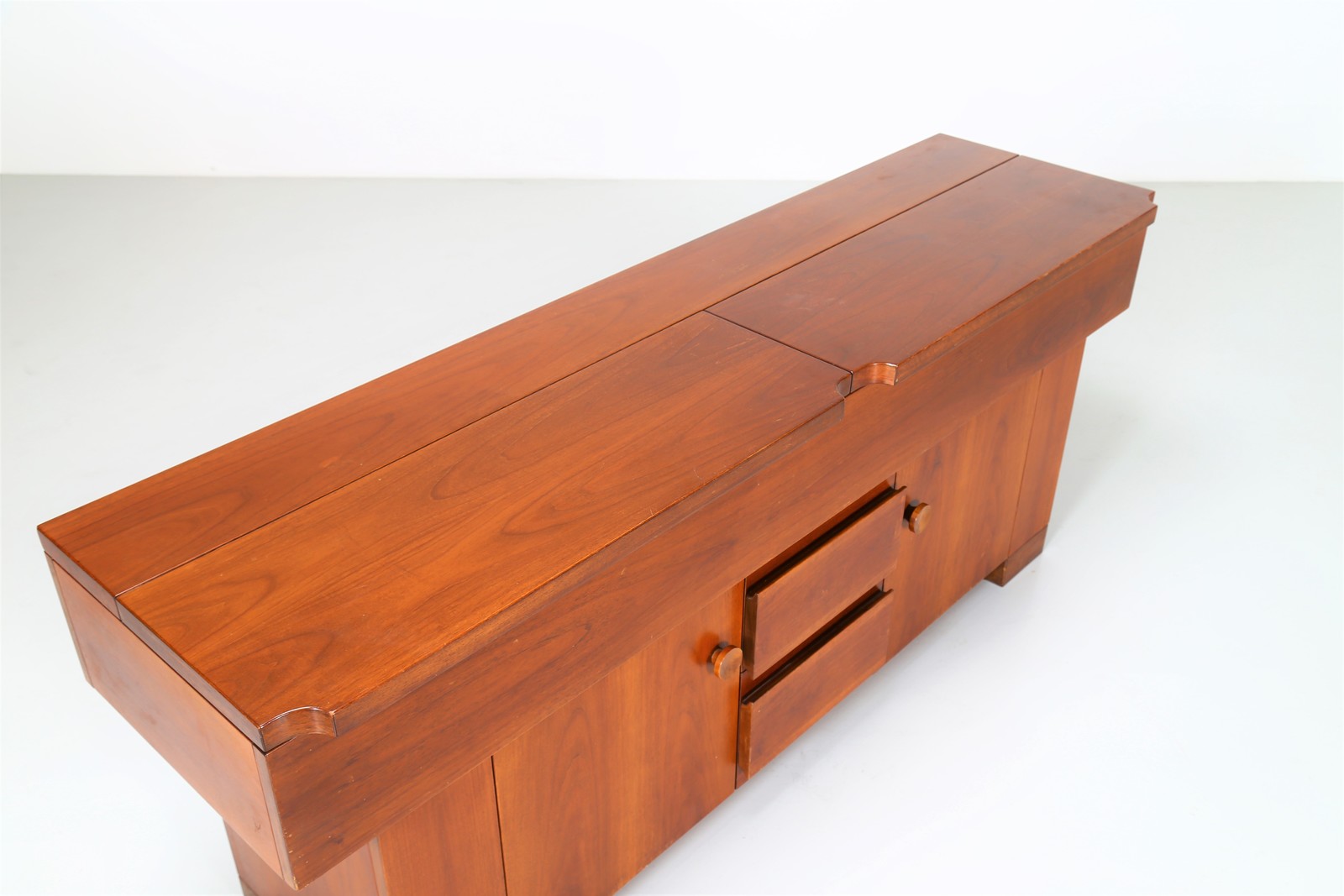 MICHELUCCI GIOVANNI (1891 - 1990) Low solid walnut sideboard, Torbecchia series for Poltronova, 1960s . . Cm 200,00 x 84,00 x 53,50.
