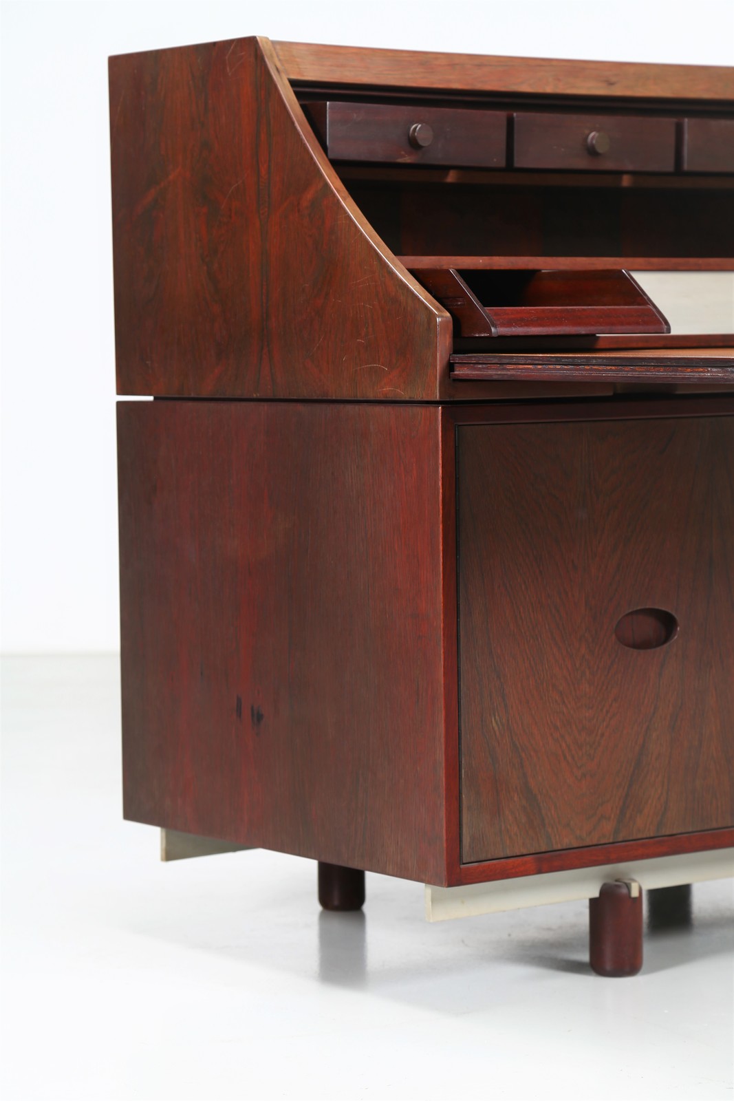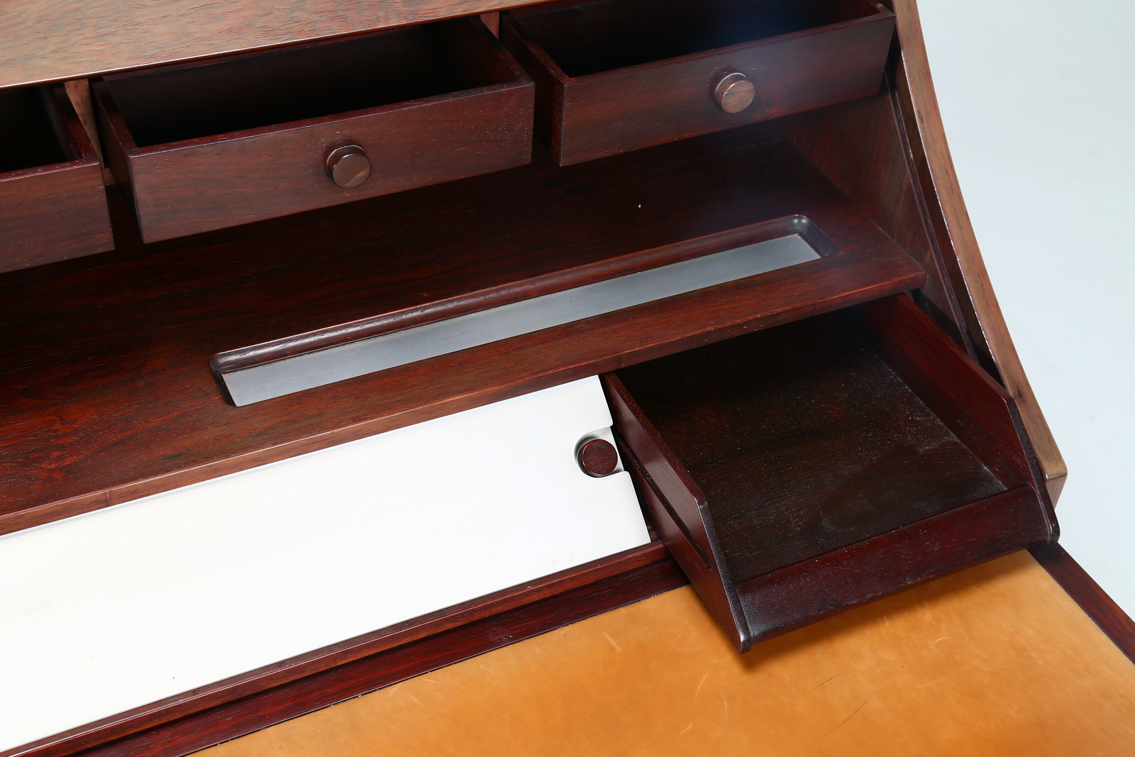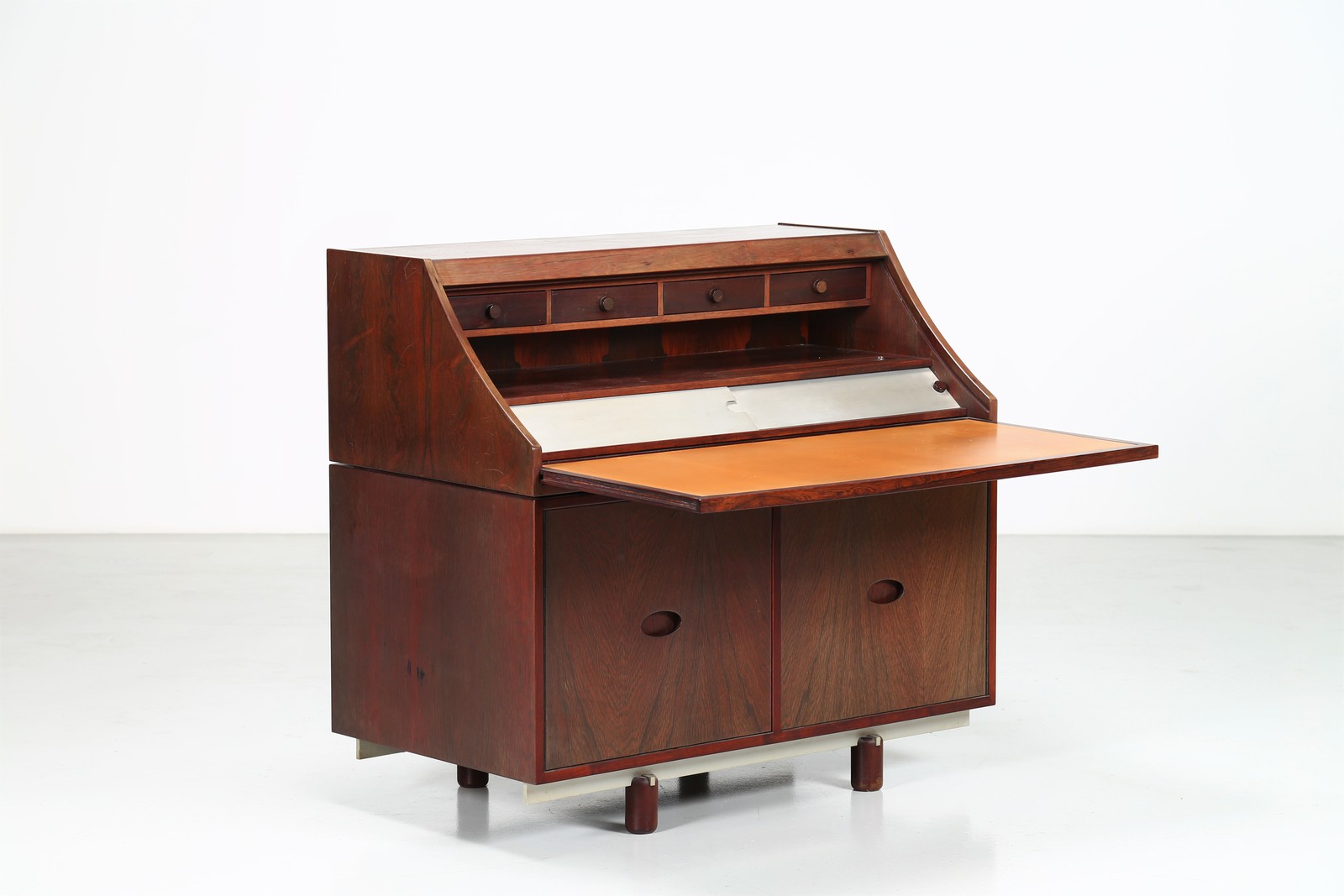 FRATTINI GIANFRANCO (1926 - 2004) Rosewood, leather and aluminum bureau, for Bernini, 1960s. . Cm 110,00 x 100,00 x 60,00.