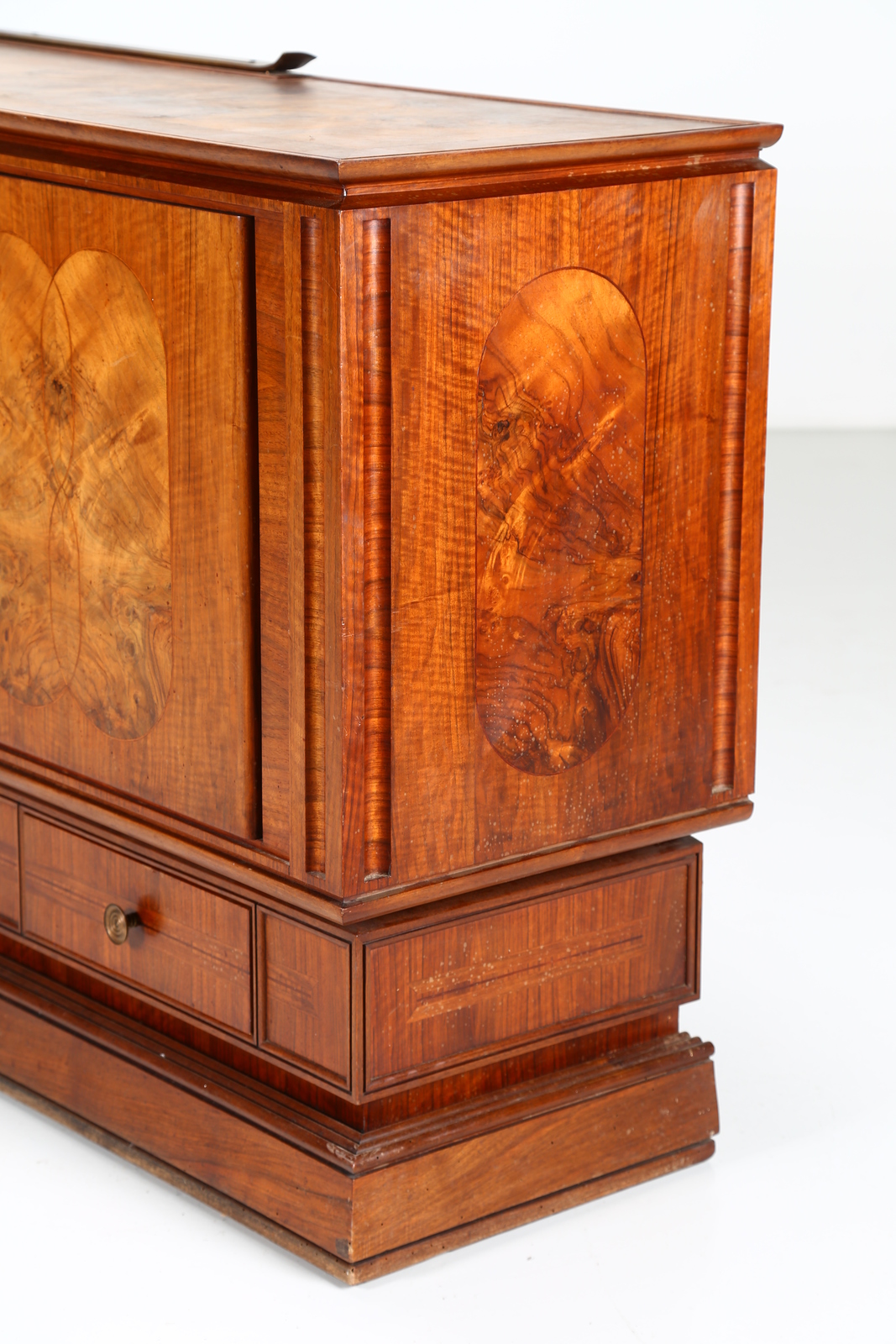 COPPEDÈ GINO Attrib. Credenza in legno e radica di noce, dettagli in ottone,...