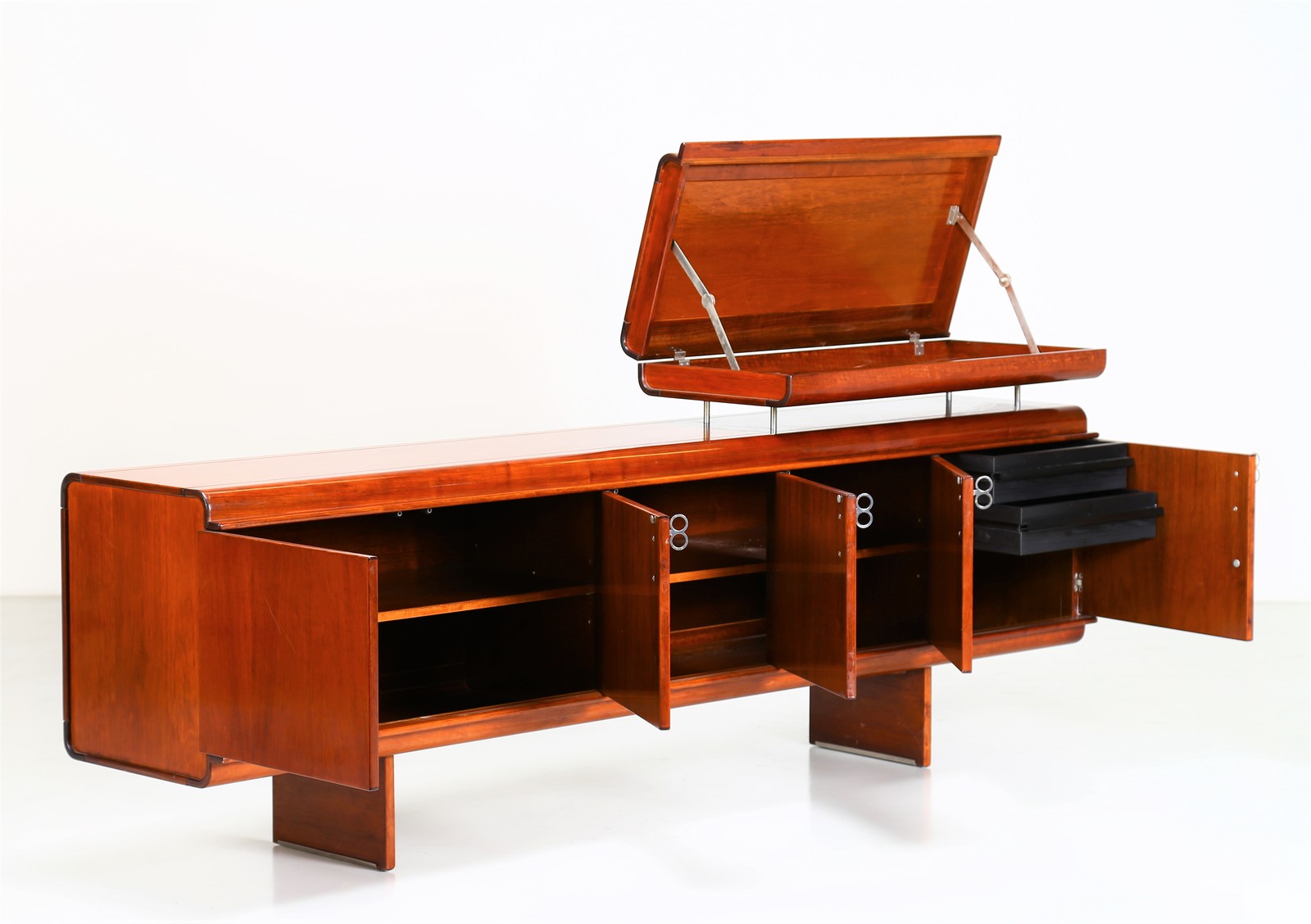 INTROINI VITTORIO Mahogany sideboard, mod. Pellicano, for Saporiti, 1960s. . Cm 244,00 x 96,00 x 54,00.