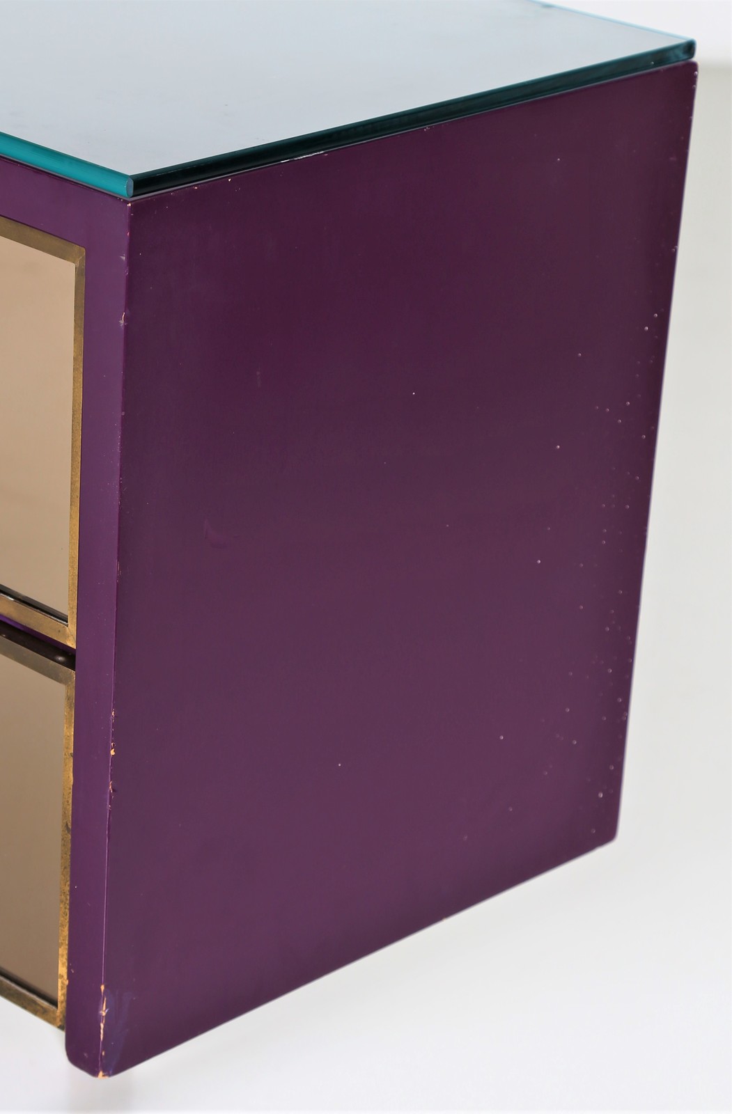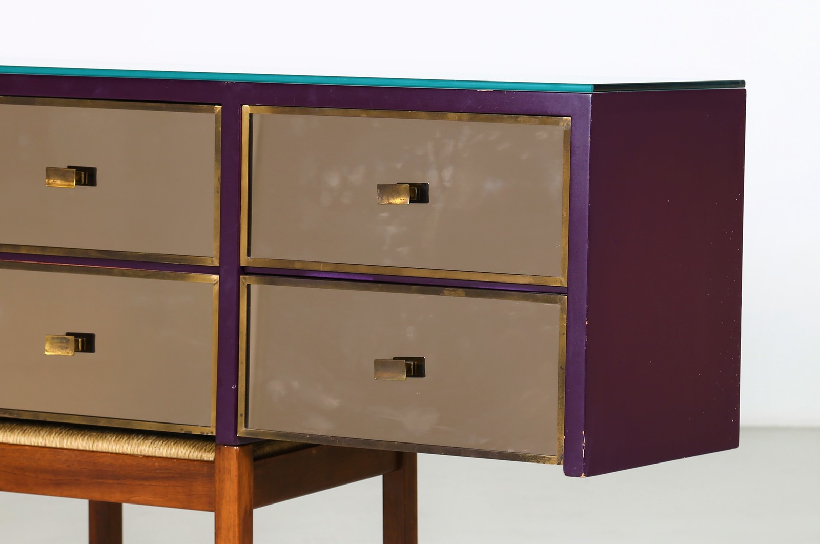 FONTANA ARTE Attrib. Lacquered wood hanging cabinet, glass top and brass details, 1950s. . Cm 299,00 x 46,50 x 40,00.