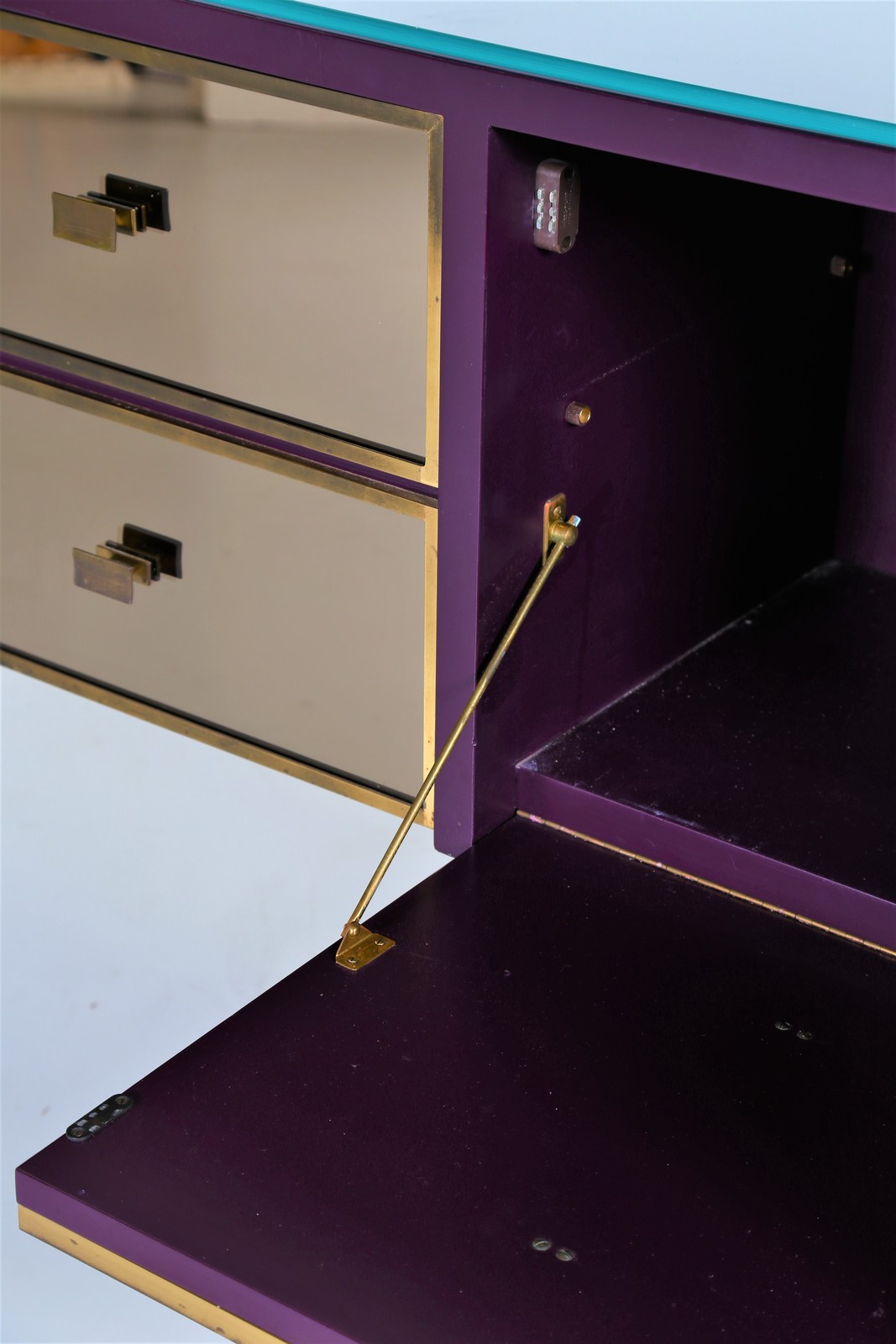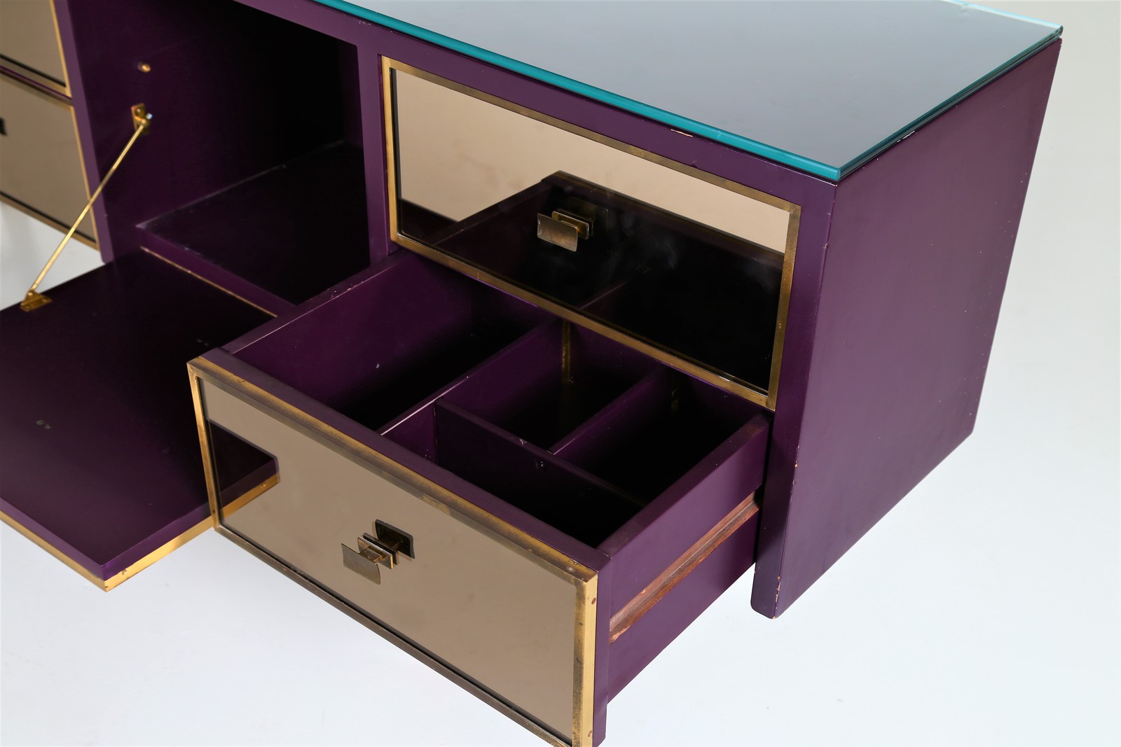 FONTANA ARTE Attrib. Mobile sospeso in legno laccato, piano in vetro e dettagli inottone, anni 50. -. Cm 299,00 x 46,50 x 40,00.
