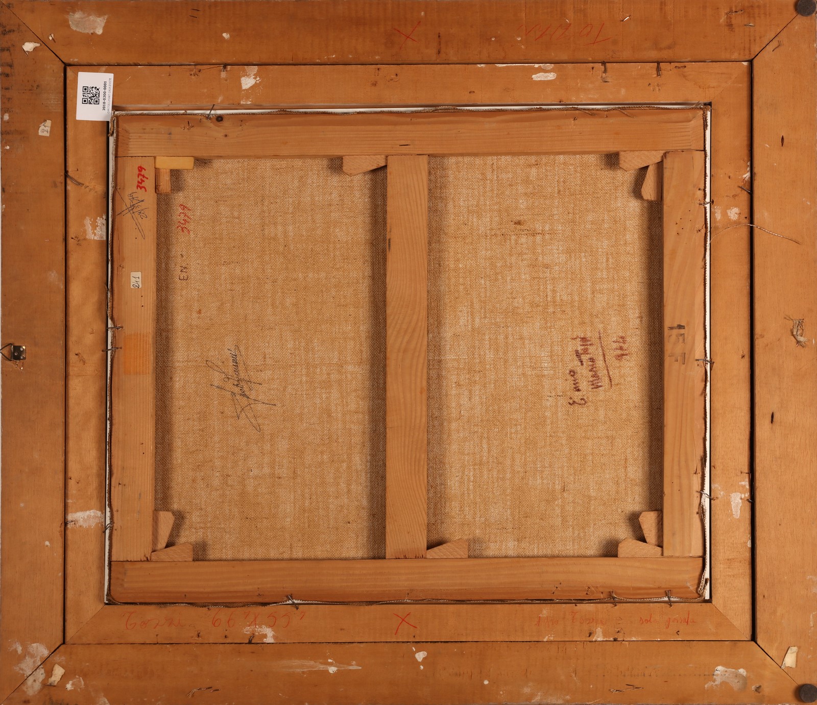TOZZI MARIO (1895 - 1979) Figure. Oil on canvas . Cm 66,00 x 54,00. Signature lower right. At the back signature and year. 1974 - 1975. Artist's authenticity certificate on photo with Eidac Gallery, Milan stamp. Publication: Mario Tozzi's catalog by Marilena Pasquali, Giorgio Mondadori & associati, Milan, 1988, Volume II, pag. 403, i. 75/37.. Cornice presente