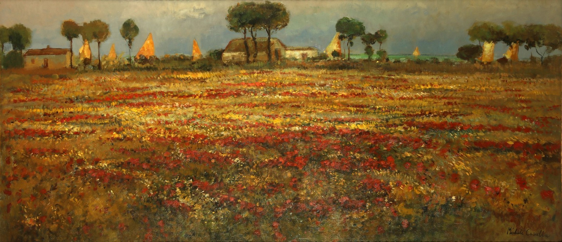 CASCELLA MICHELE (1892 - 1989) Landscape. Oil on canvas . Cm 118,00 x 54,00. Signature lower right. Artist's authenticity certificate on photo. Cornice presente