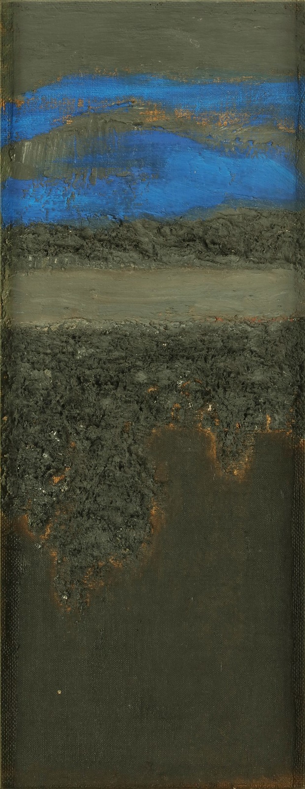 MATTIOLI CARLO (1911 - 1994) The black beach. 1988. Oil on canvas . Cm 29,00 x 75,00. At the back title, signature and year. Artist's authenticity certificate on photo. Telemarket authenticity certificate. Cornice presente