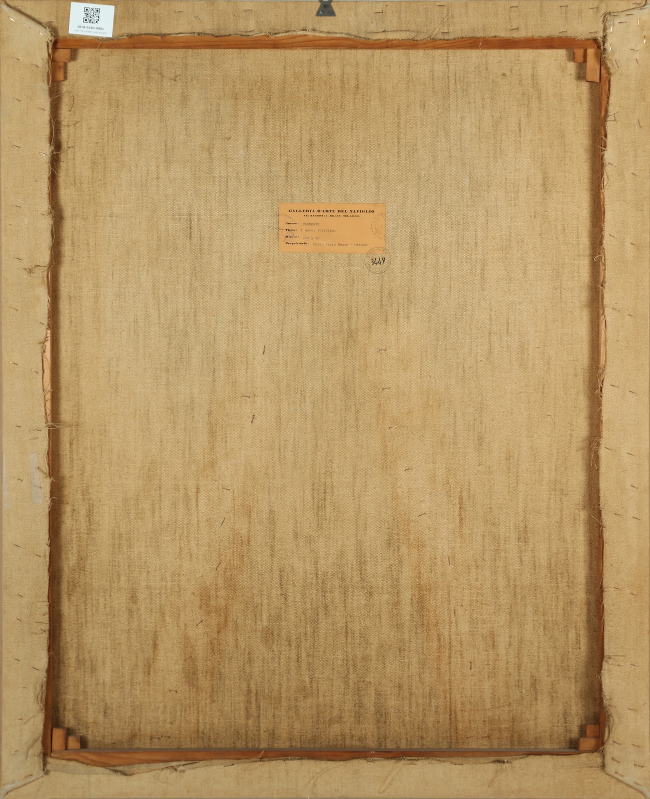 CLEMENTE JACK (1926 - 1976) I nuovi feticismi. Tecnica mista su tela. Cm 80,00 x 100,00. Al retro cartiglio descrittivo con timbro Galleria d'arte Il Naviglio, Milano. Provenienza: Collezione Sirio Musso, Milano.