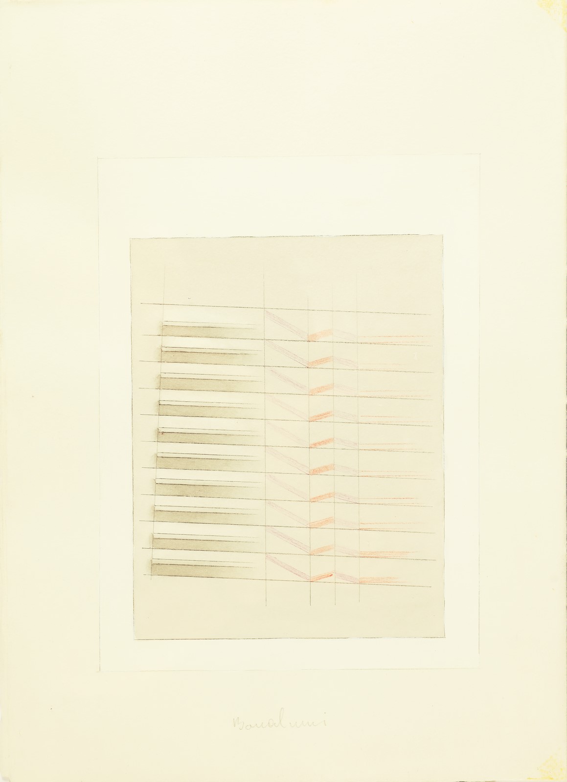 BONALUMI AGOSTINO (1935 - 2013) Project. 1997. Watercolour on paper. Cm 25,00 x 35,00. Signature lower centre. Bonalumi archie's authenticity certificate on photo with artist's signature. Provenance: Catanese collection, Turin.. Cornice presente