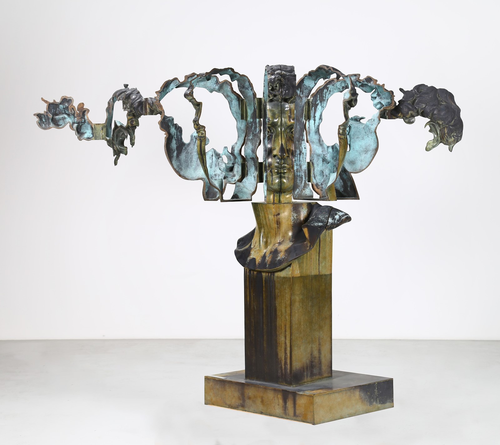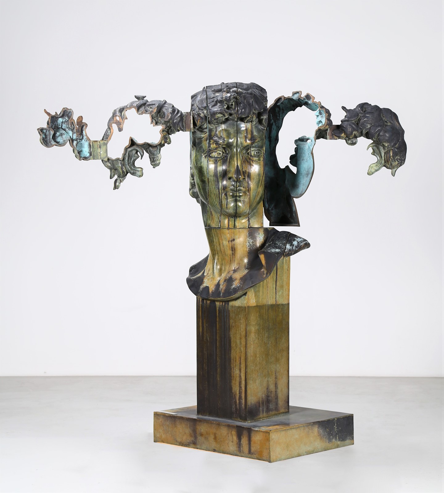 ARMAN FERNANDEZ (1928 - 2005) Tete de mars sur charnieres. 1998. Bronze. Cm 84,00 x 190,00 x 66,00. 4/6. Edition and signature engraved at the base. Dante Vecchiato Archives authenticity certificate on photo. Provenance: Agnelli Arte Moderna, Brescia (certificate on photo); Private collection, Brescia.