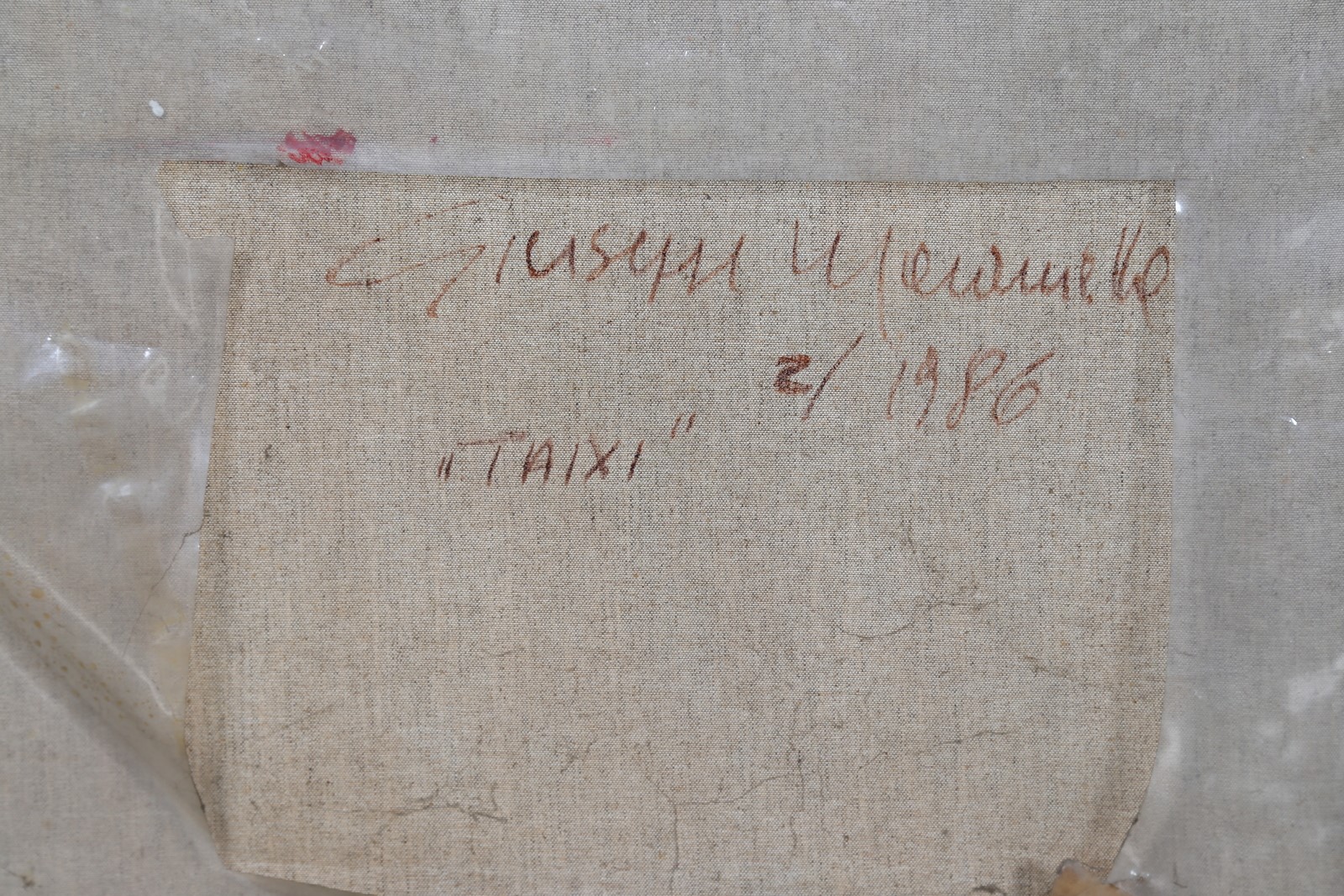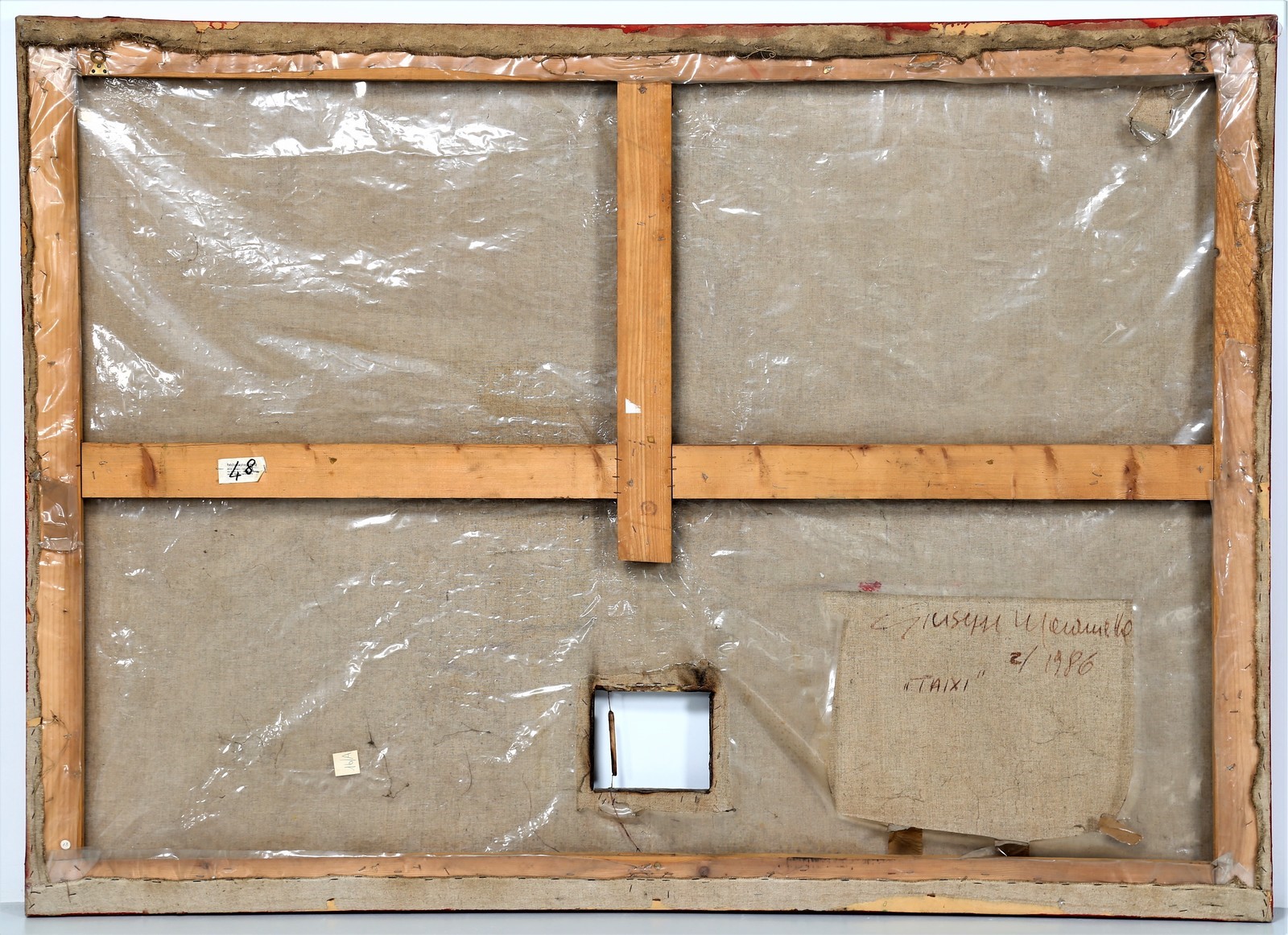 MARANIELLO GIUSEPPE (n. 1945) Taixi. 1986. Mixed media on canvas. Cm 180,00 x 130,00. At the back title, signature and year. Artist's authenticity certificate on photo.