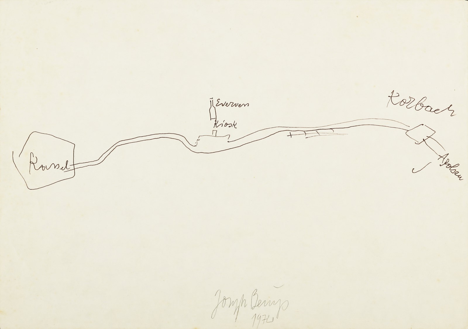 BEUYS JOSEPH (1921 - 1986) Untitled. 1974. Ink on paper. Cm 42,00 x 30,00. Signature and year lower. Cannaviello Art Study, Rome authenticity certificate. Cornice presente