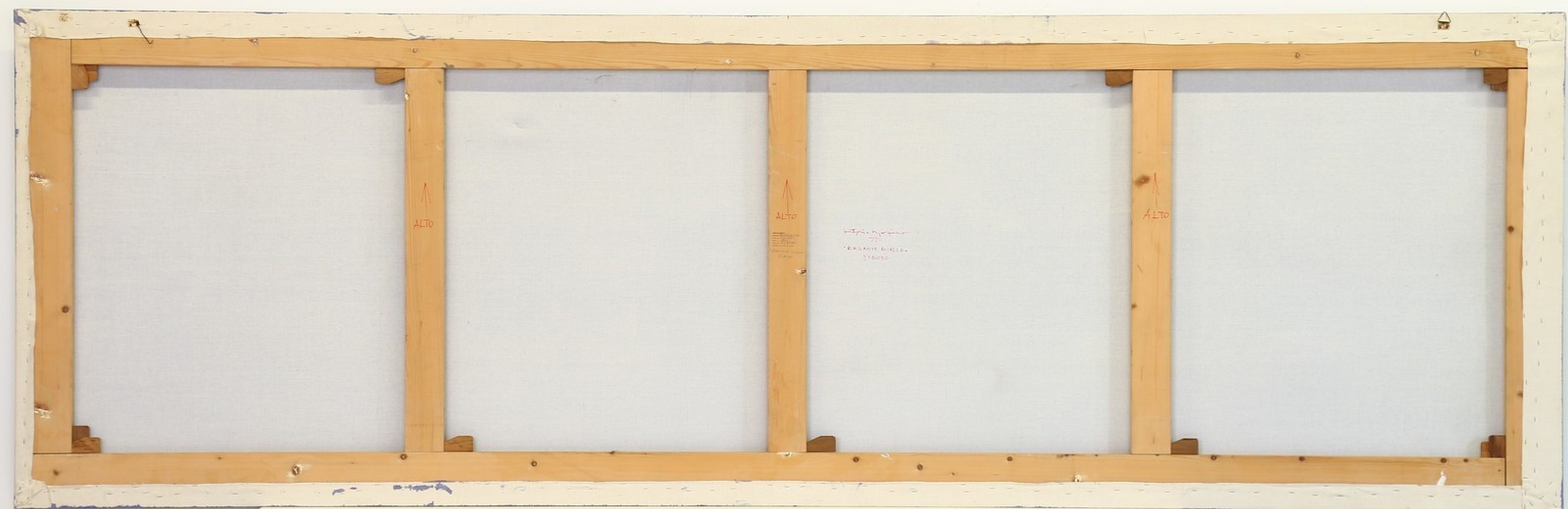 MATINO VITTORIO (n. 1943) Errante giallo. 1990. Mixed media on canvas. Cm 108,00 x 356,00. Signature, titol, archive number and artist's stamp at the back. Provenance: Private collection, Milan (acquired directly from the artist).
