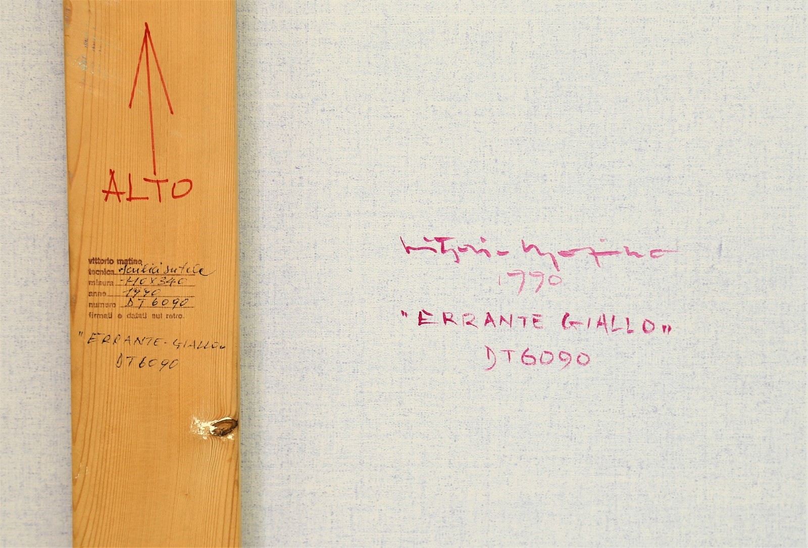 MATINO VITTORIO (n. 1943) Errante giallo. 1990. Tecnica mista su tela. Cm...