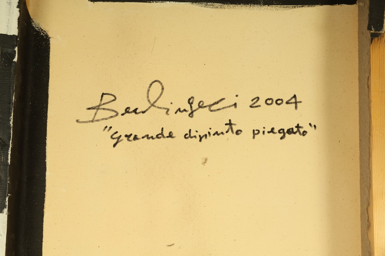 BERLINGERI CESARE (n. 1948) Grande dipinto piegato. 2004. Tecnica mista su tela piegata. Cm 115,00 x 128,50. Al retro titolo, firma e anno.Opera archiviata presso l'Archivio Berlingeri - Galleria d'Arte Vecchiato, Padova come da documentazione fotografica allegata all'opera riportante il relativo numero d'inventario. Certificato di garanzia Telemarket, Roncadelle (Bs). Provenienza: Telemarket, Roncadelle (Bs). Cornice presente