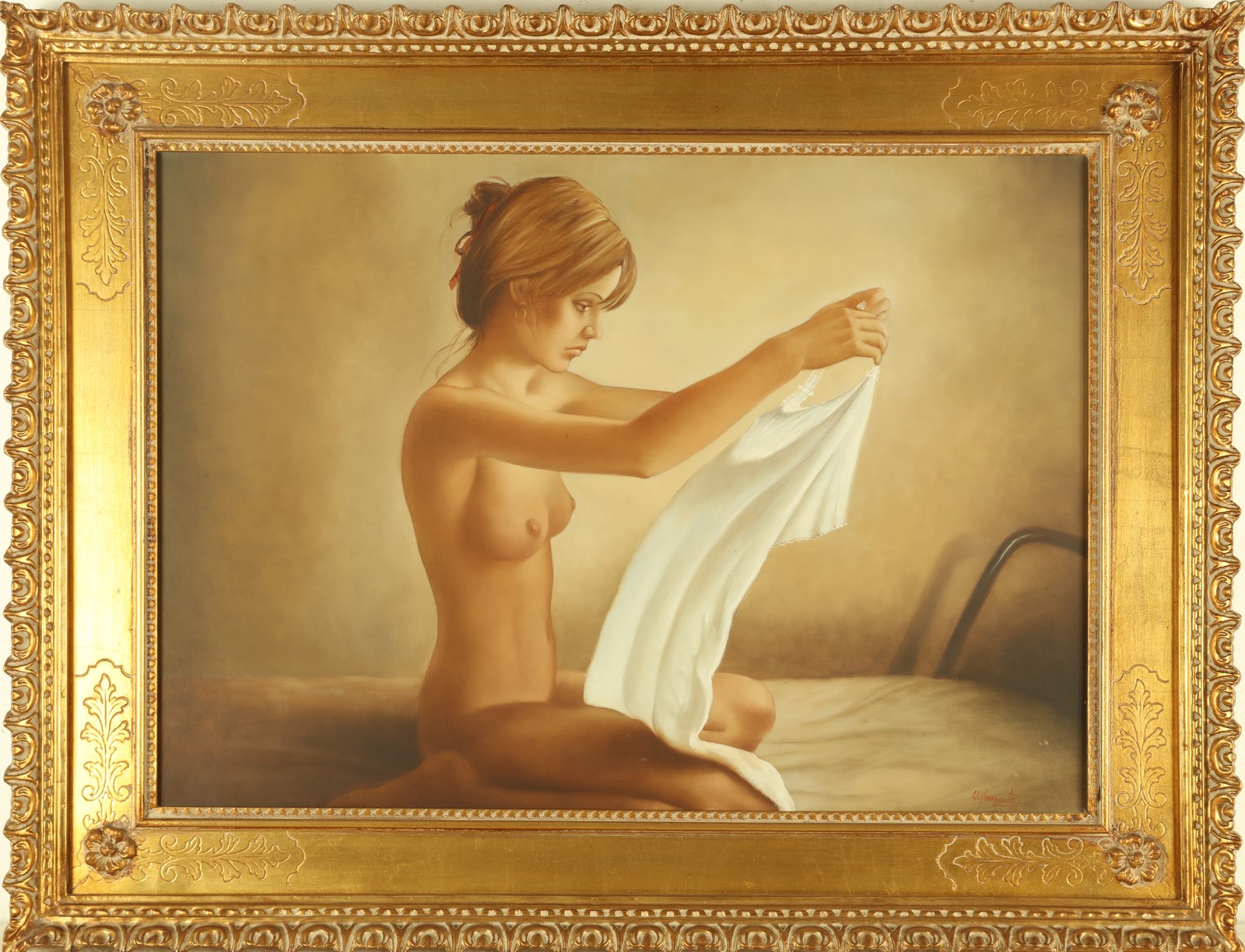 NUNZIANTE ANTONIO (n. 1956) The interior. 1987. Oil on canvas . Cm 70,00 x 50,00. Signature lower right. At the abck signature and title. Nunziante archive's authenticity certificate on photo.. Cornice presente