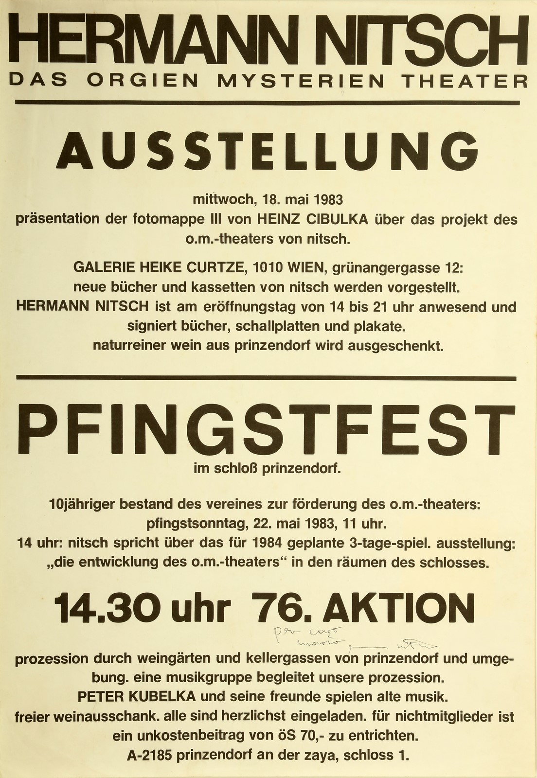 NITSCH HERMANN (n. 1938) Lotto composto da n.3 manifesti. Manifesto. Cm 43,00 x 61,00. Uno presenta firma e dedica.