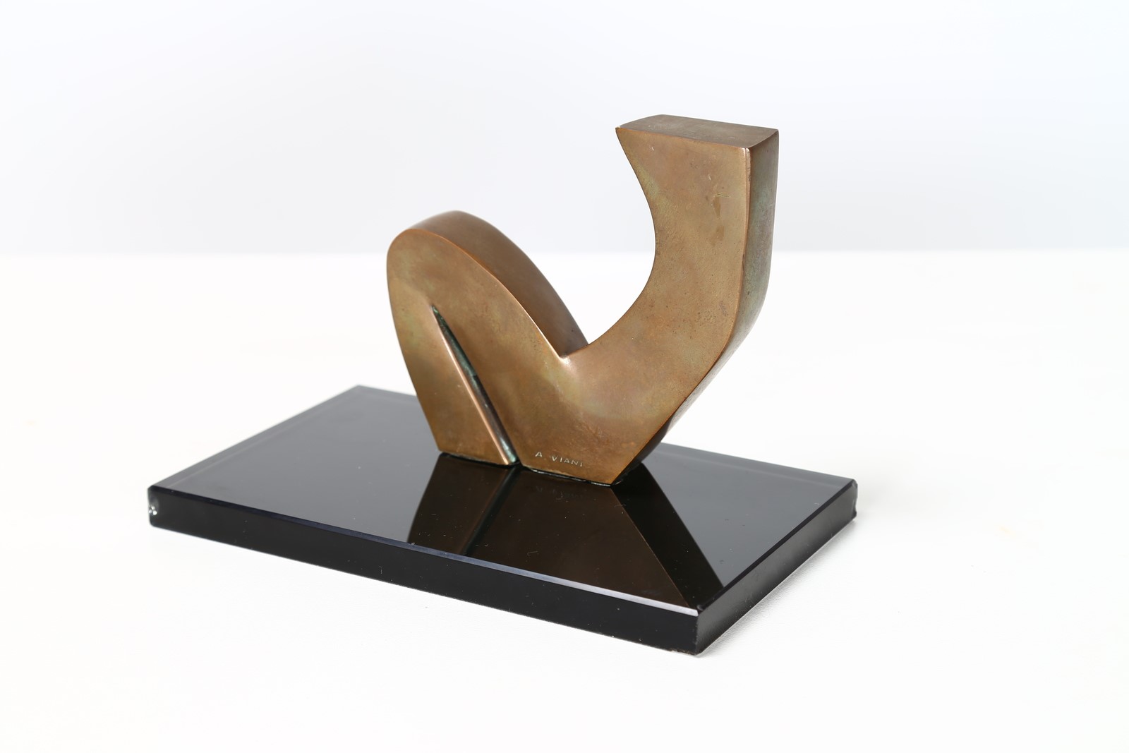 VIANI ALBERTO (1906 - 1989) Senza titolo. Scultura in bronzo fuso a cera persa. Cm 14,00 x 12,00 x 3,00. XXI/XXX. Tiratura e firma incise alla base. Opera staccata dalla base in vetro.