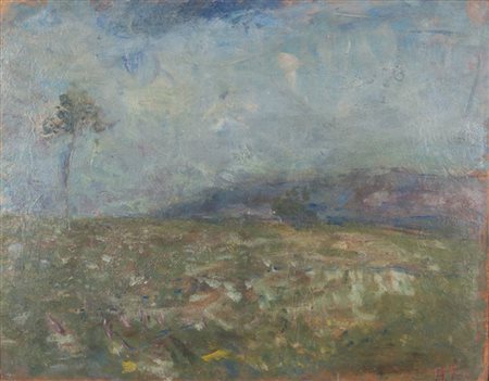 ARTURO TOSI (1871-1956) Prato fiorito con albero (prima metà anni Dieci)olio...