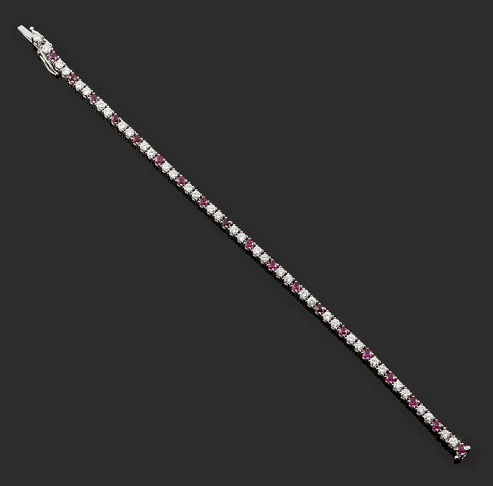 Bracciale in oro bianco, modello tennis, con diamanti taglio