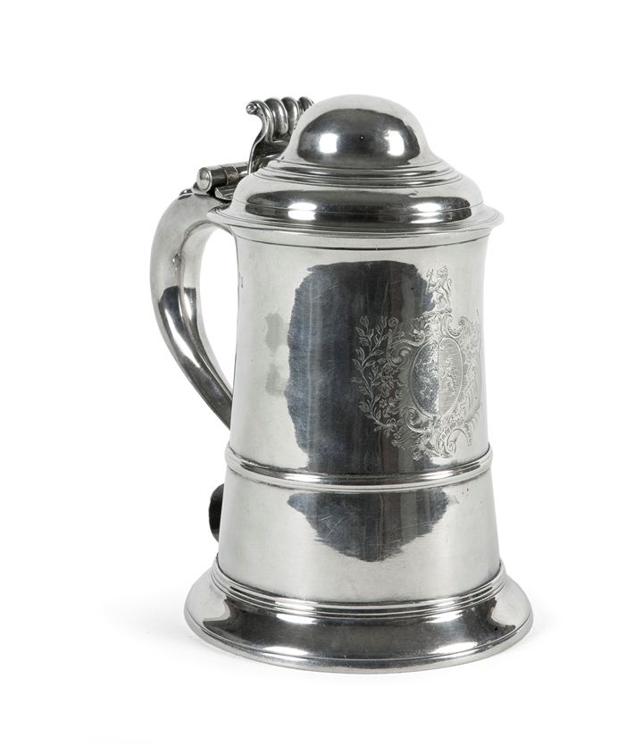 TANKARD IN ARGENTO Tankard in argento 925 millesimi, Londra 1758, Argentiere...