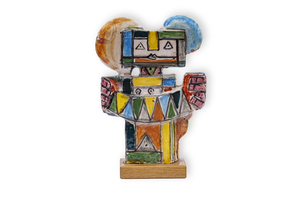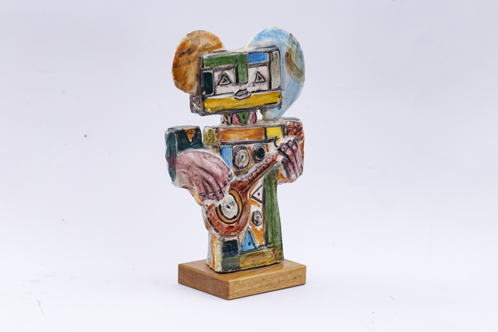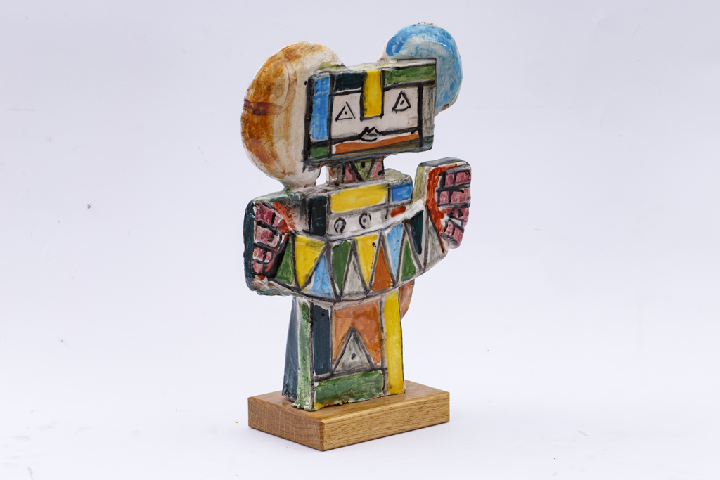 IBRAHIM KODRA (1918-2006)SuonatoreScultura in ceramica smaltatacm...
