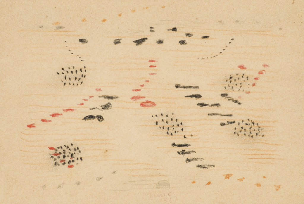 ZORAN ANTONIO MUSIC (1909-2005)Paesaggio Senese, 1957Tecnica mista su cartacm...