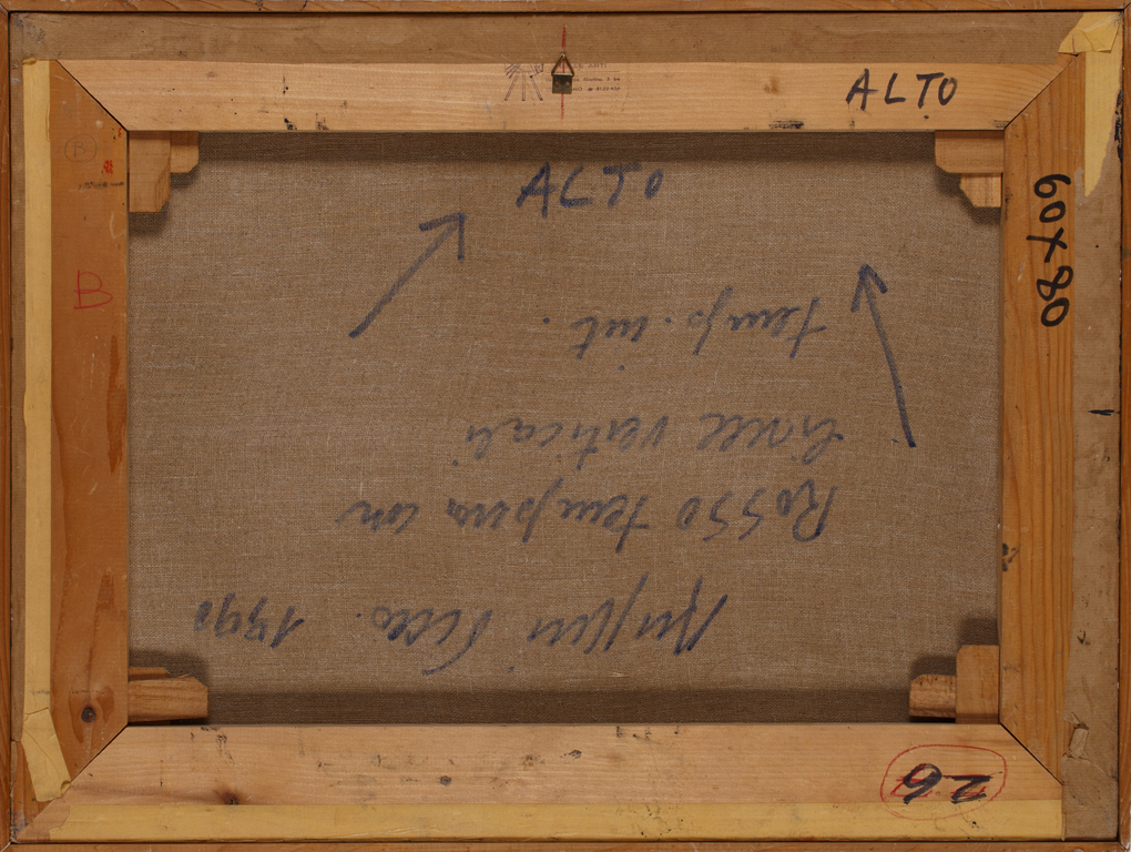 PIERO RUGGERI (1930-2009)Rosso tempera con linee verticali, 1990Tempera su...