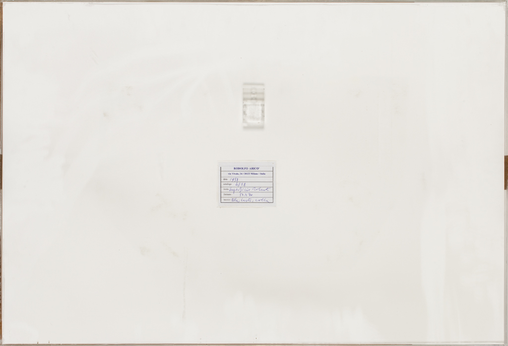 Etichetta dell'Artista al retro con caratteristiche tecniche dell'opera e numero di catalogazione