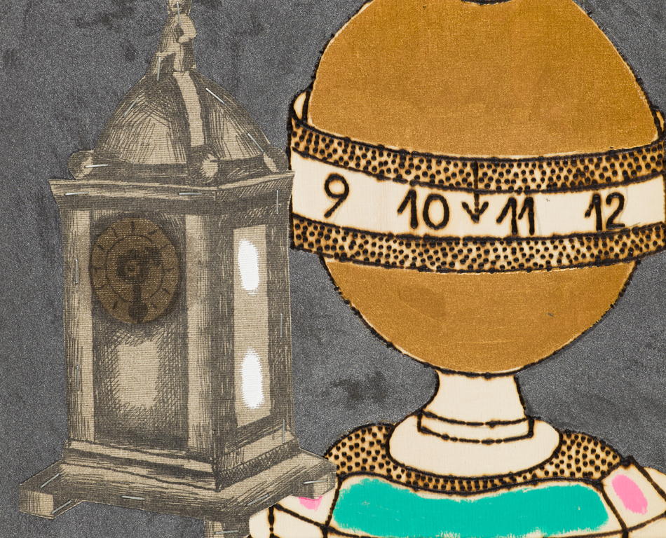 Tecnica mista e pirografia su tavola