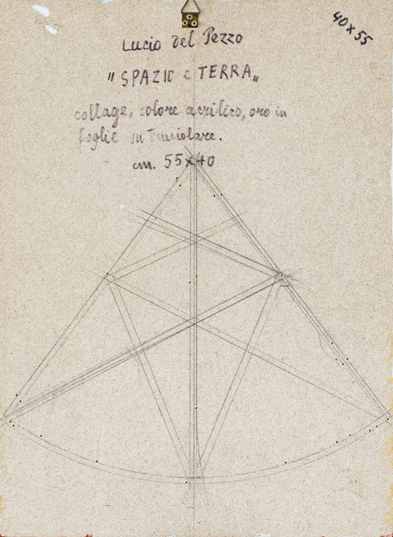 LUCIO DEL PEZZO (1933)Spazio e terraCollage, colore acrilico e oro in foglie...
