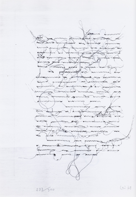 Opera realizzata per la rivista Geiger 8. Antologia ipersperimentale, a cura di Adriano e Maurizio Spatola, Edizioni Geiger, Torino, 1979, edita in 300 esemplari numerati I/XXV, 026/175 e 176/300 e contenente pagine-oggetto delle artiste Maria Lai, Claudia Salaris, Irma Blank, Lucia Marcucci, Batty Danon, Mara Cini, Greta Schoedl, Lia Rossi, Giulia Niccolai, Elisabetta Gut, Giuliana Pini