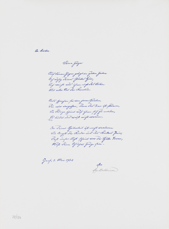 Firma e numerazione (Esemplare 77/134) a matita al fronte di ciascuna
