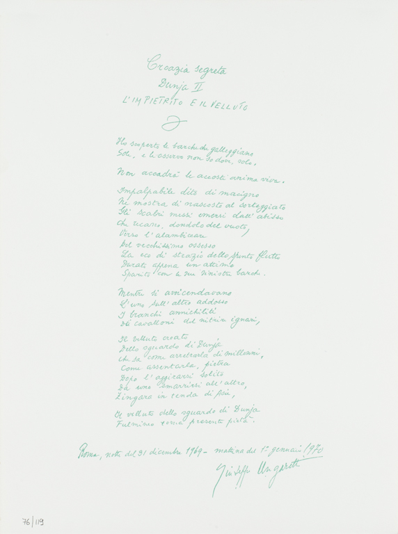 Cartella contenente 2 acqueforti di Bona De Pisis e 1 poesia di Giuseppe Ungaretti