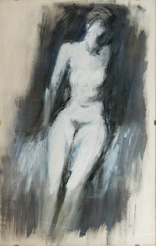 Giuseppe Ajmone (Carpignano Sesia 1923 – Romagnano Sesia 2005), “Ritratto”, 1963. Olio e tecnica mista su carta, firmato e datato in basso a destra Ajmone 63, H cm 150x96.5