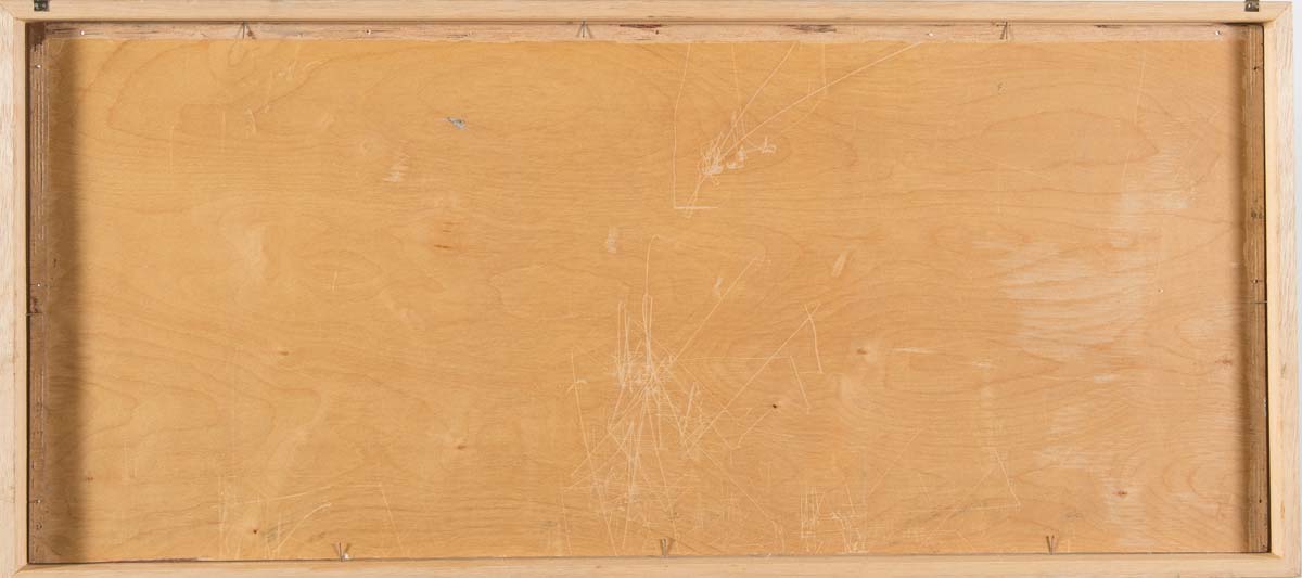 Quinto Ghermandi (Crevalcore 1916 – San Lazzaro di Savena 1994), “Incontro lungo il cammino”. Olio e tecnica mista su tavola, firmato e titolato in basso a destra ‘Incontro lungo il cammino- Q. Ghermandi', H cm 39.5x91