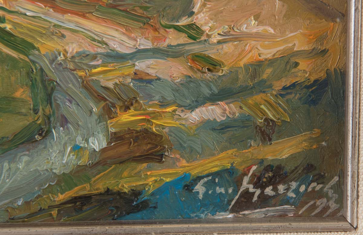 Gino Marzocchi (Molinella 1895 – Bologna 1891), “San Luca”, 1971. Olio su tavoletta, firmato e datato in basso a destra Gino Marzocchi 1971, H cm 15x22