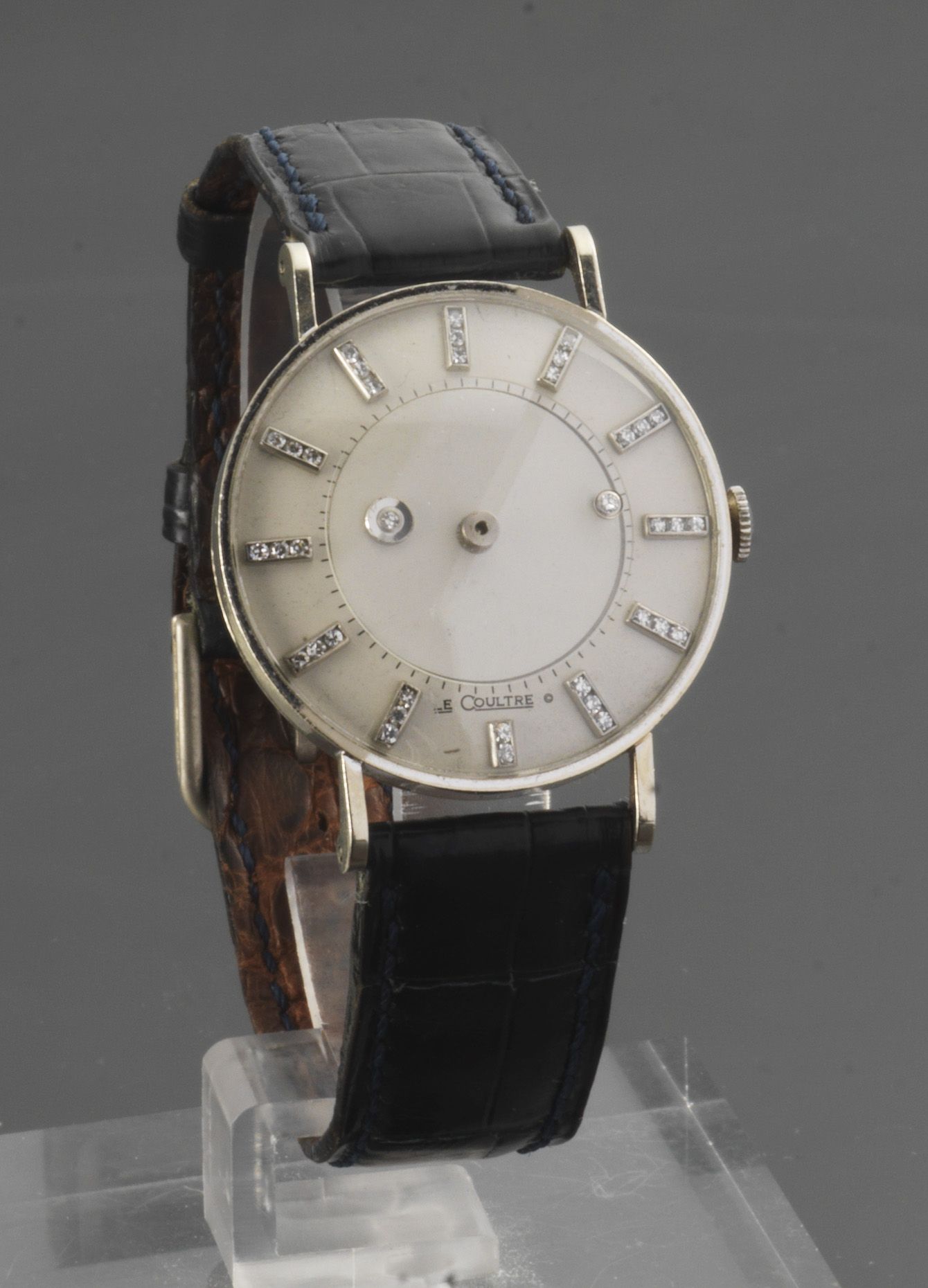 JAGER LE COULTRE Modello Galaxi, anni '50, "Misterioso" Diam. 35 Indicazione del tempo su dischi trasparenti con indici e sfere in brillanti, cassa in oro bianco 14 Kt, creato in collaborazione con Vacheron & Constantin Movimento a carica manuale