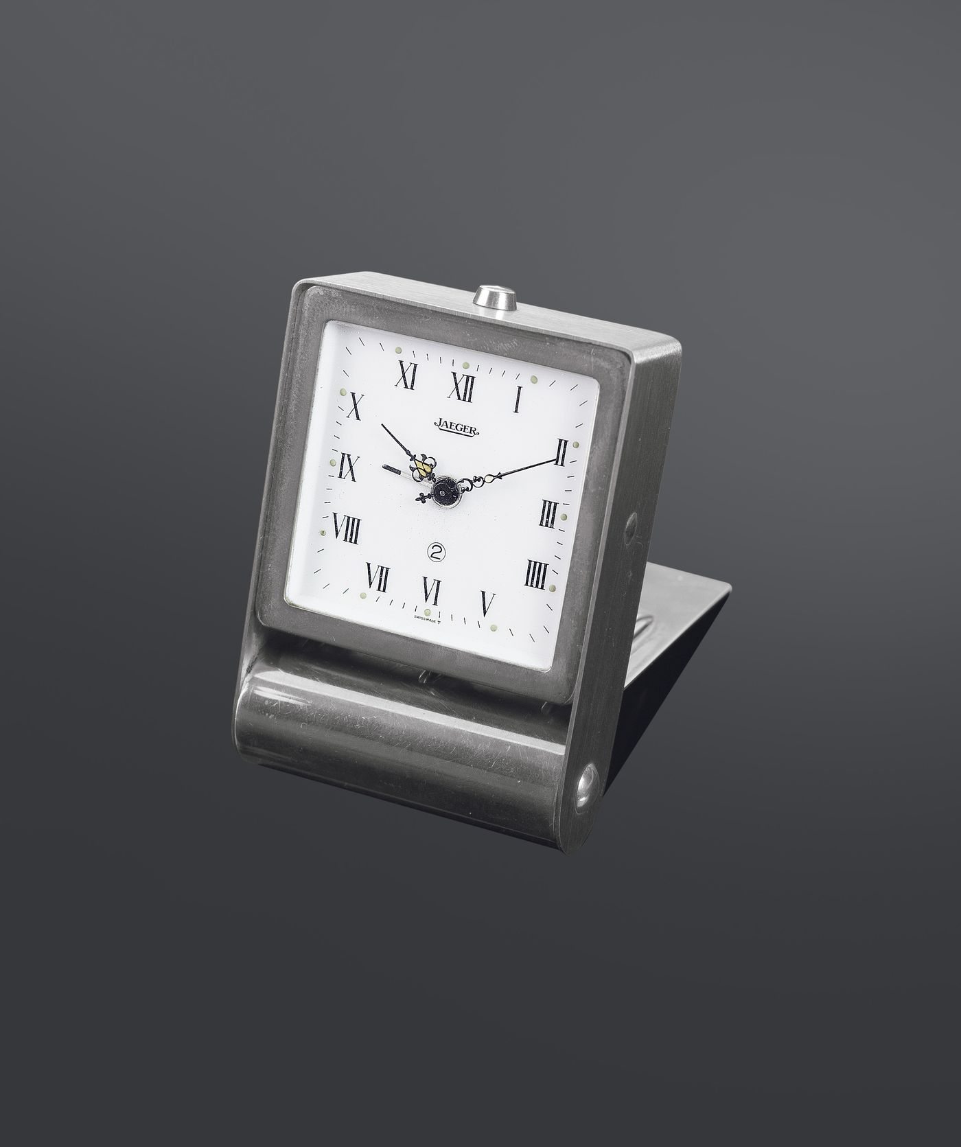 JAGER LE COULTRE Sveglietta da viaggio, anni '70 Cassa nichelata in due...