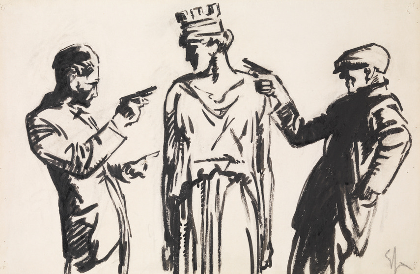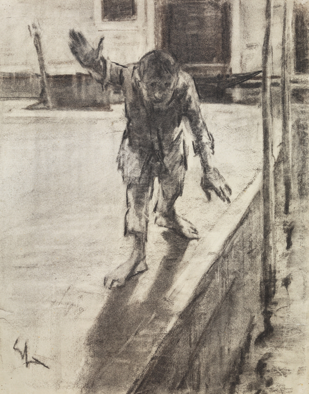 Enrico Sacchetti DUE DISEGNI L’Italia minacciata Inchiostro di china. mm 319x490. Firmato. Mendicante su un molo Gessetto nero. mm 440x345. Firmato. (non riprodotto) (2)