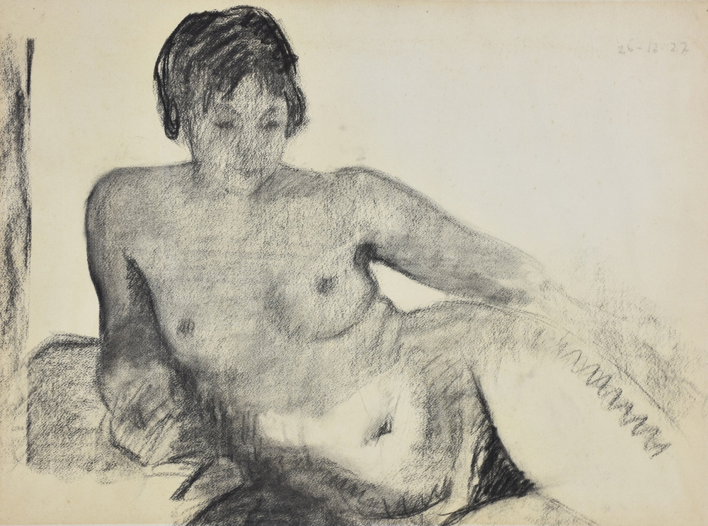 Gigi Chessa Nudo di Donna carboncino su carta applicata su cartoncino, cm 49x60 sul fronte: data sul retro: dichiarazione di autenticità del figlio Mauro Chessa datata 12/12/70 eseguito nel 1927
